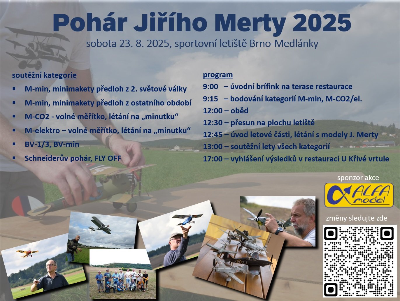 Vážení soutěžící, na sobotní akci je vše připraveno, sněžit nemá, pršet také ne. Program soutěže zůstává beze změny dle pozvánky. Bodovači a časoměřiči jsou zajištěni. Vegetace by měla být modelům příznivá, tráva na ploše ještě posečená není, doporučuji s sebou pro vaše prvoválečníky nůžky, abyste n...