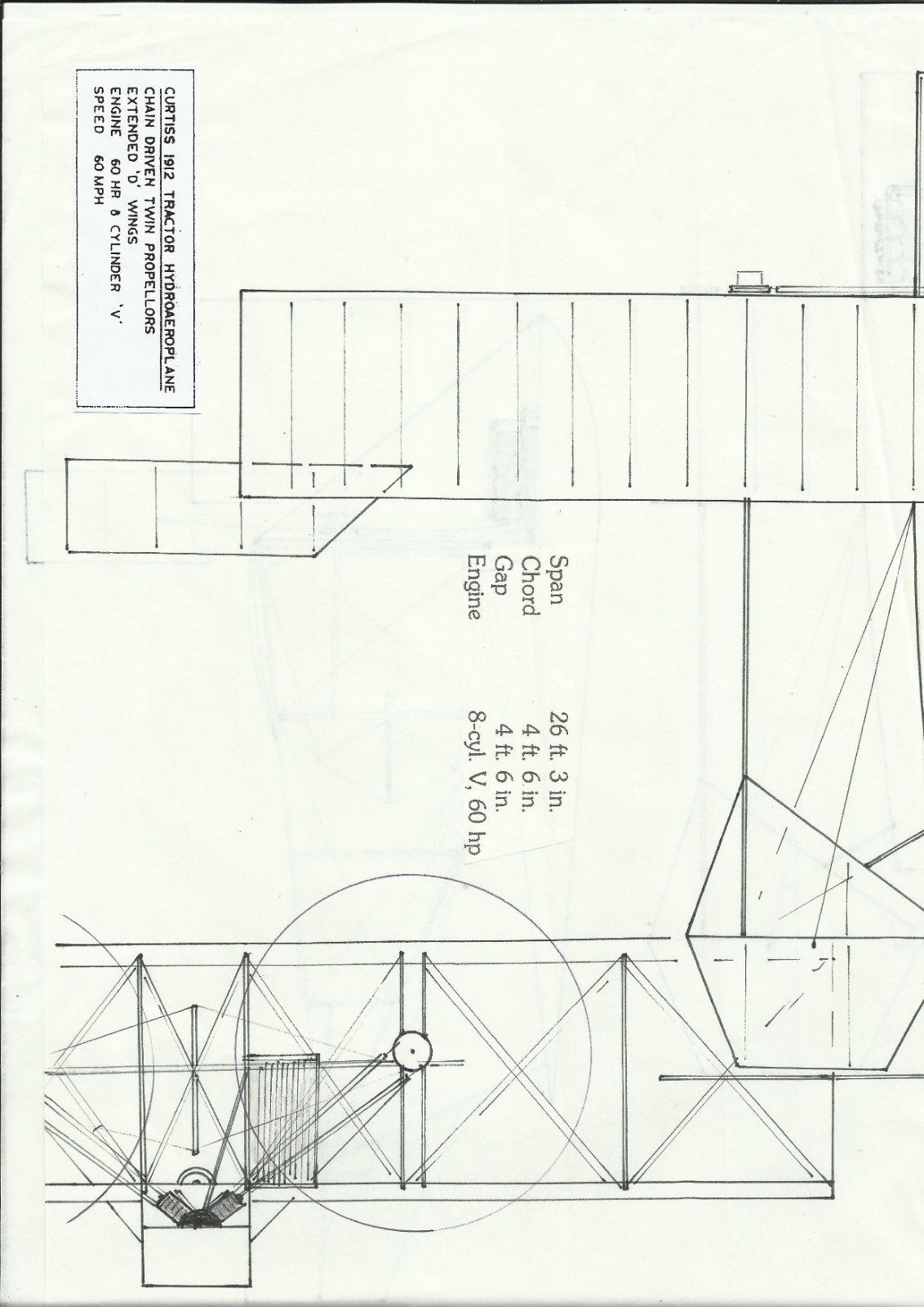 Přikládám komentář k fotografii Curtisse No.1., ale je to z internetu, nemusí to být pravda :-) Celkem mne zaráží ten údaj z přilepeného štítku Lubošova výkresu o rychlosti 60 MPH při 60 HP motoru, při obrovských dvou vrtulích hnaných přes řetěz.. Spíš bych se podíval po modelu No.2 s třílistými vrtulemi, který je stejné koncepce a dokonce letěl.