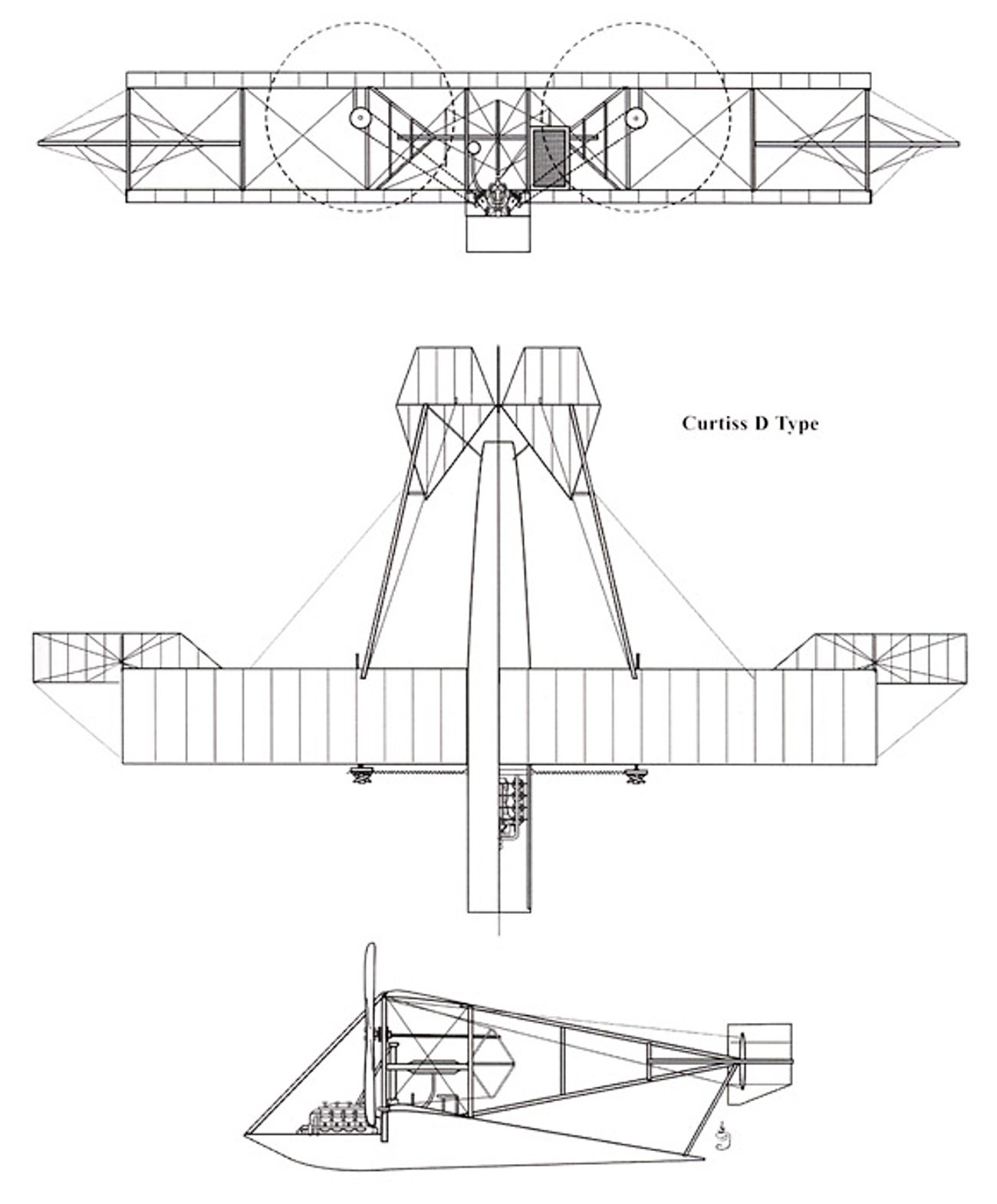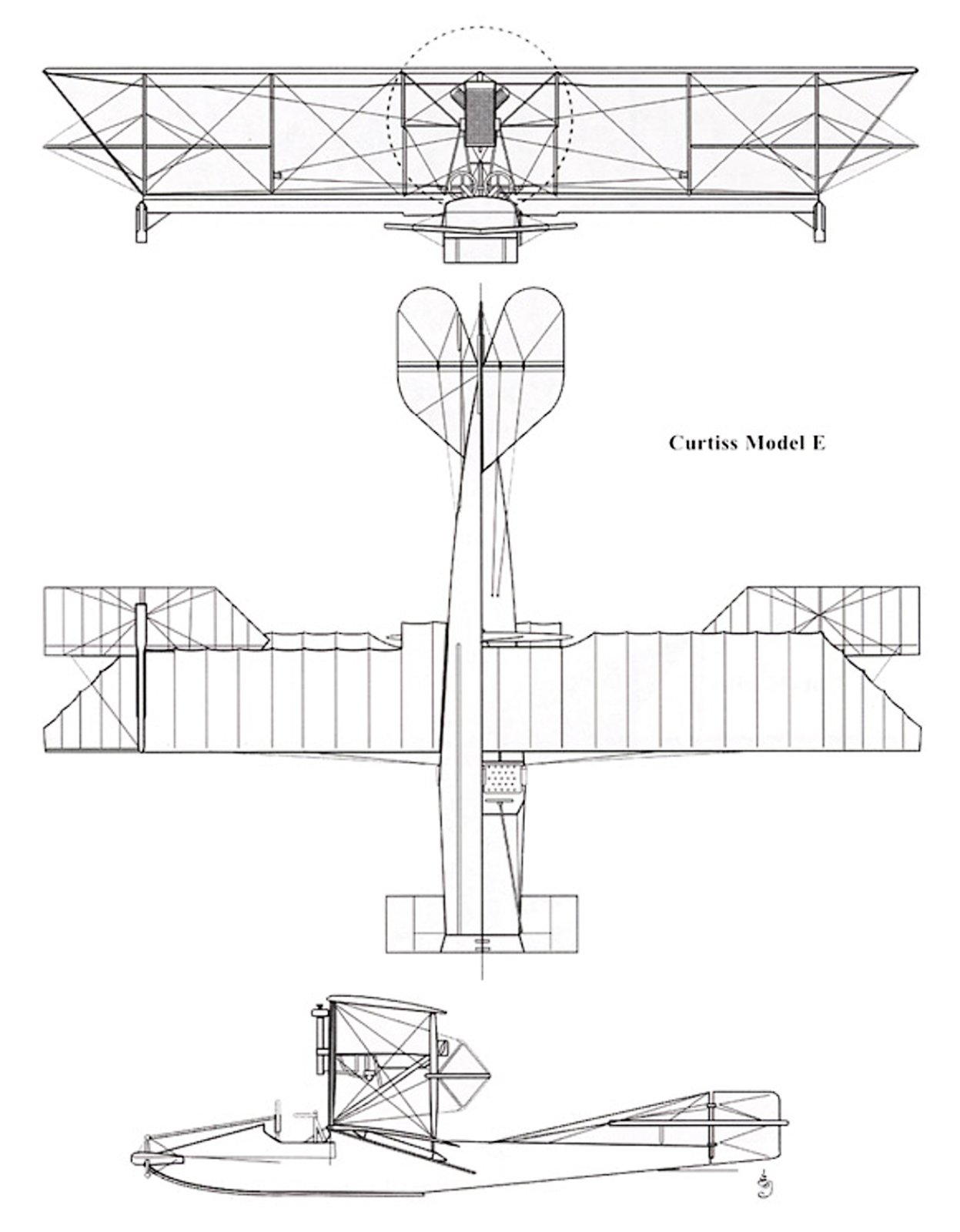 Model Nr.1 je vlastně model D. Model Nr. 2 je E a F, kdy efko je seriové provedení éčka po úpravách. To letadlo označené jako Nr.2 a má dvě vrtule je zvláštní. Je to vůbec Curtiss?