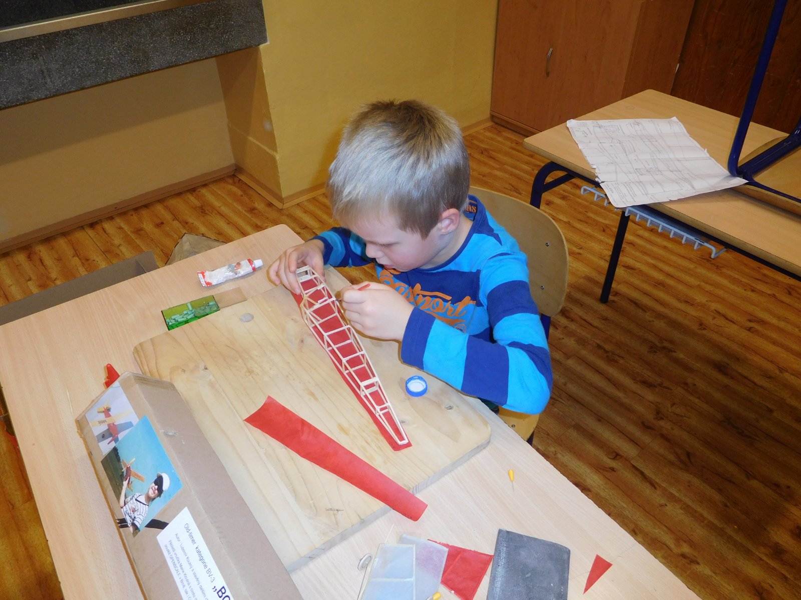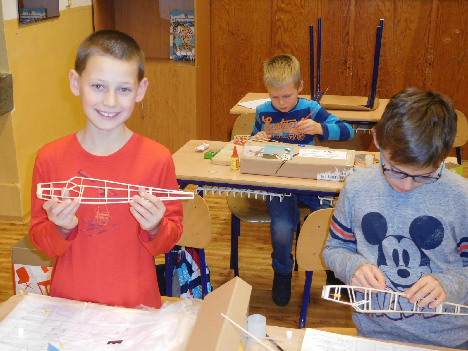 Jinak další čtyři stavebnice malého old-timera BOBÍK jsem dal členům nového kroužku v ZŠ na Slovanském náměstí, chlapci jsou šikovní, takže hned na první schůzce po předání již měli hotová křídla v kostře, na druhé je potáhli, postavili kostru kormidel a bočnice trupu. Jde jim to jako po másle. Do Vánoc budou mít Bobíky hotové.
