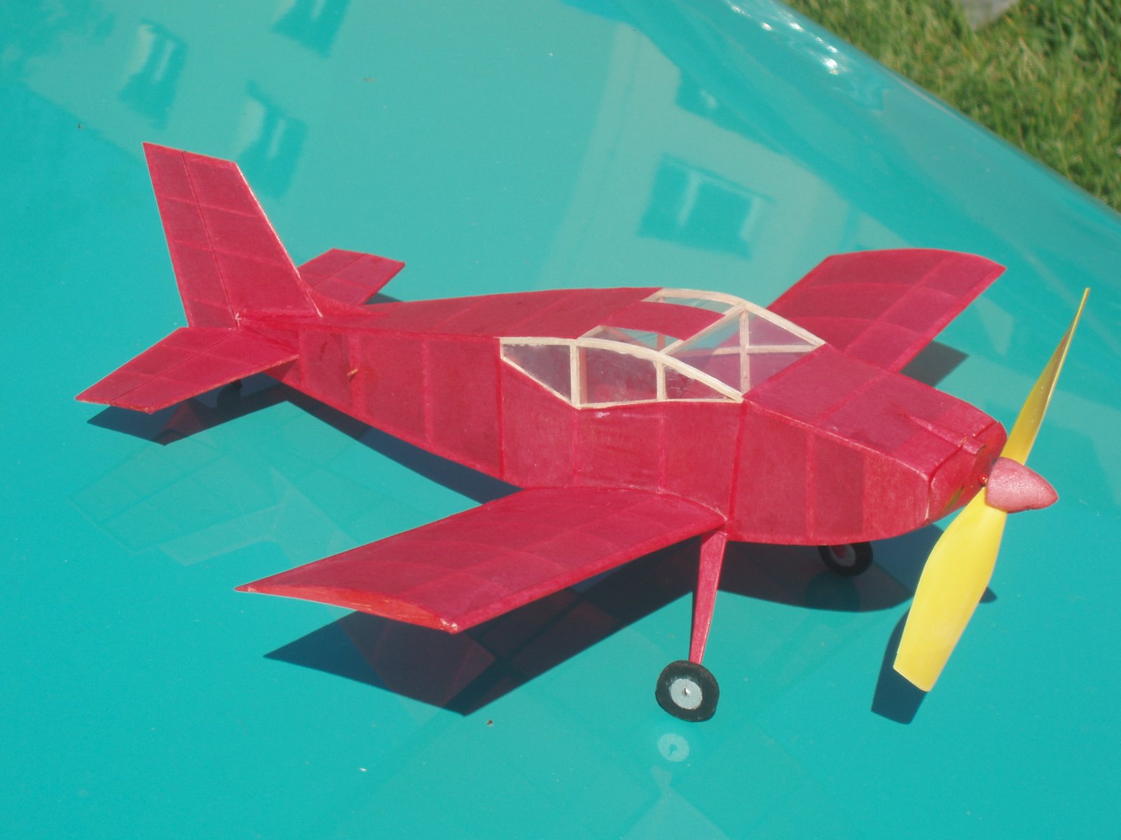Pěkně postavené, hezké, ale je to jiný model. Pokud bych u tak malého modelu vůbec dělal odnímací křídlo, pak každá půlka zvlášť na bambusových kolíčcích zasouvaných do papírových trubiček v trupu. Takže poloha křídla by byla beze změny, nárůst váhy minimální a dalo by se to vozit v menší krabici.