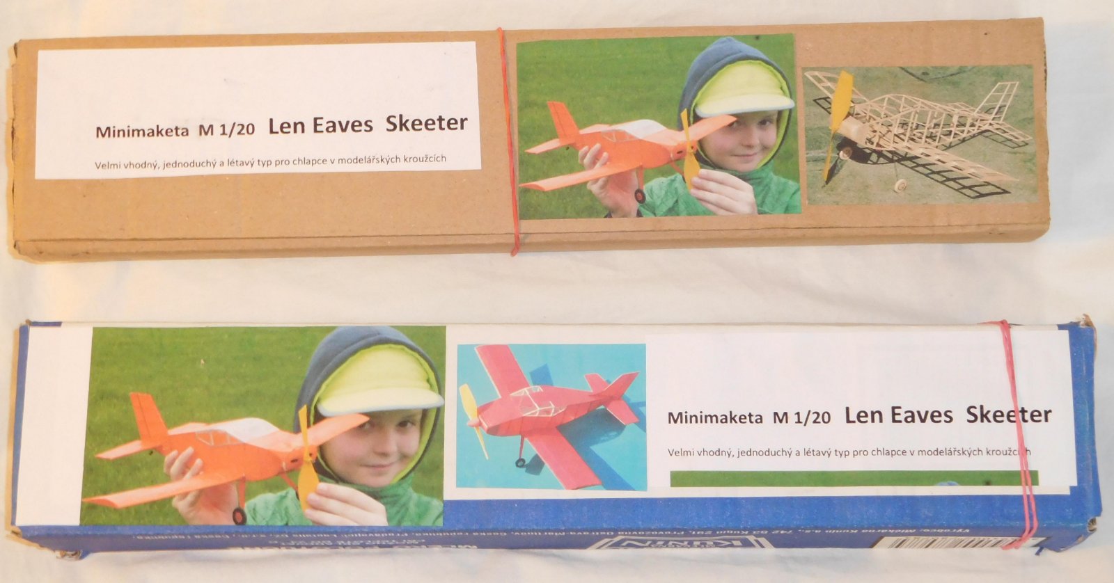 Takže když jsem získal další podklady pro malý UL Eaves SKEETER bylo rozhodnuto. Eroplán je to krabicových tvarů, vrtule IGRA 150 bez potřeby úprav. První dvacetinka ještě měla zjednodušené provedení křídla – lomení do jednoduchého V i když toto má být do U. Dvacetinka hezky létala a tak další dva chlapci v kroužku již stavěli křídlo tak, jak má být, tedy do U, ale jeho vsazení po rozpůlení do trupu jsem zase musel dělat já. Proto nyní křídlo se staví v celku, tak se také potáhne a vlepí do otvoru ve spodku trupu. Je to jednodušší, přesnější a snad to sami zvládnou i hoši v kroužku. Abych jim práci usnadnil, tak sem pro pár dvacetinek připravil stavebnice, které zde také nabízím.