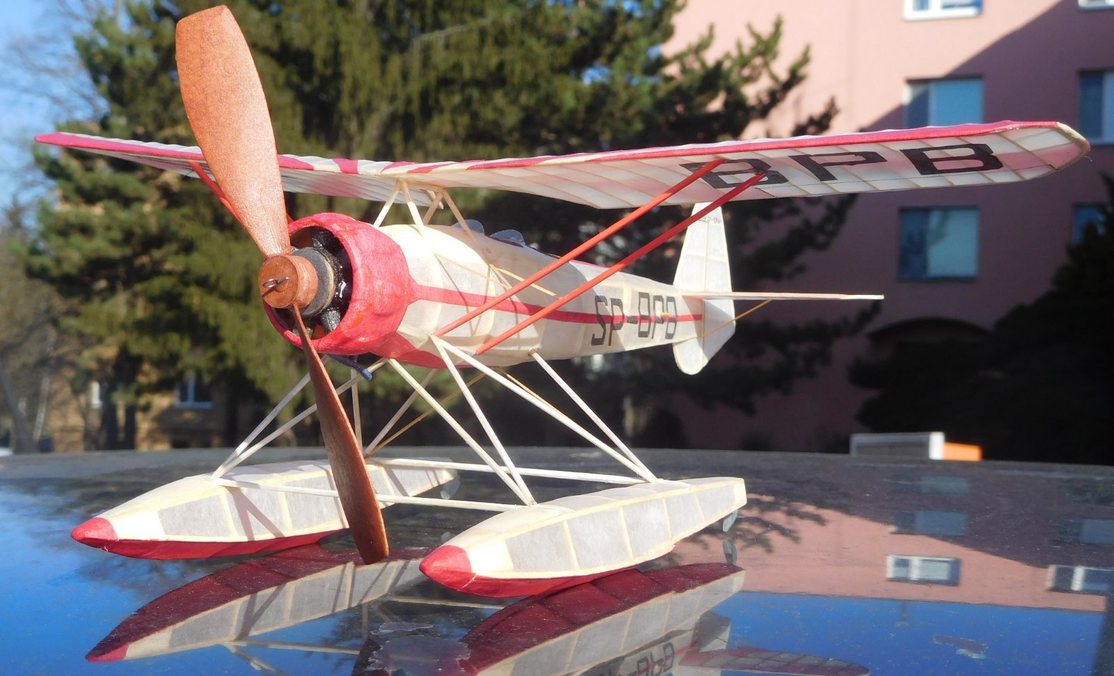 Gratuluji k úspěšnému zalétání. Jak jsem zde již napsal, je to velmi pěkná a zajímavá předloha, přidávám si na svůj bucket list. Natahoval jsi nějak Luboši vzpěry plováků? Podle měření z třípohledu vrtule vychází na nějakých 120 mm, což není mnoho, ale i s malou vrtulí se dá.. nebo jak je to s tím divadlem. A druhý dotaz, při pátrání jsem narazil na trochu odlišné barvy, resp. většina podkladů z různých zdrojů tvrdí, že stroj byl stříbrno-červený, což ale nevylučuje shodu barev na soutěži, pokud máš podklady odlišné.