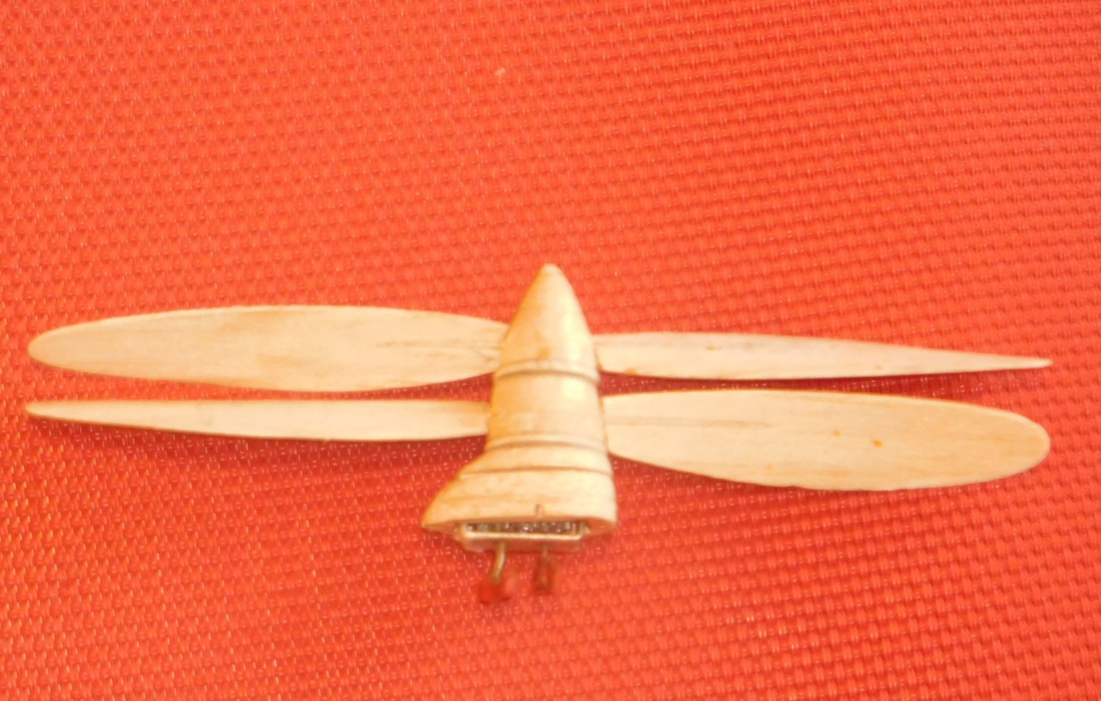 Červík začal vrtat v hlavě, co tak se vrátit k původnímu řešení – jednoduchý kontraprop s balzovou trubkou, bez převodovky. Výsledkem by mohla být úspora cca 2, 5g tedy za převodovku, část gumy a ten špendlík. Jenže jak dostat natočený svazek (původní délka smyčka 370mm. 2.2 g/m) do balzové trubky, která nesmí mít větší vnější průměr než 9 mm? Pak mne napadlo ještě jiné řešení : Kontraprop chudého muže. Ten bude také na jeden svazek, bez trubky a převodovky (tedy pokud za ni nebudeme považovat minimální třícípou drátěnou hvězdu s korálky, nalepenou na pevnou netočící se Al trubičku, nebo silnější injekční trubičku, to mezi dvěma mezikružími z překližky 0,5 mm, polepenými napjatou gumou z kondomu. Ony korálky nahradí všechna ta ozubená kolečka, klece atd.