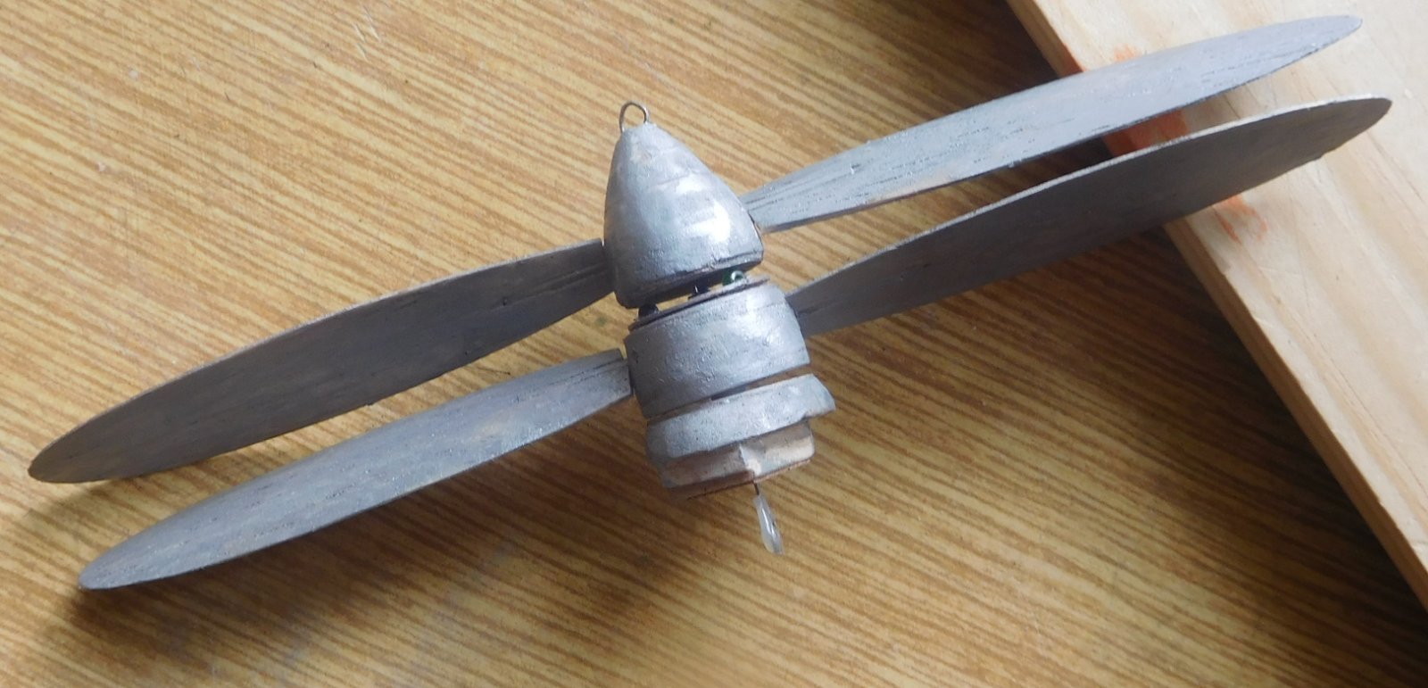 Takže zatím jsem udělal novou hlavici a pevnou štyřlistou vrtuli a zkusím, jak bude oříšek M.72 s ní létat. Také jsem udělal novou VOP zvětšenou o 10%, protože s maketovou bez vrtule, dovážovaný modelářskými špendlíky s těžištěn v 35% odmítal letět a šel po nose dolů, klouzat začal, až když těžiště bylo v 65%, což by nešlo v motorovém letu.