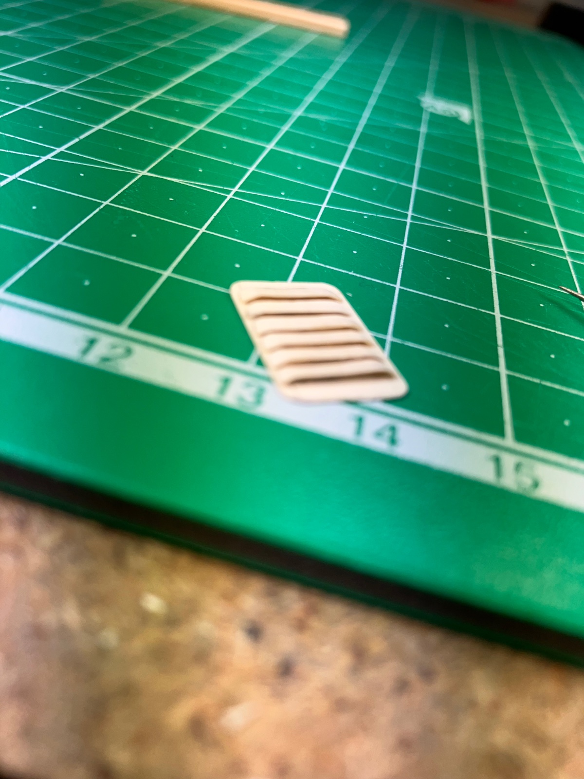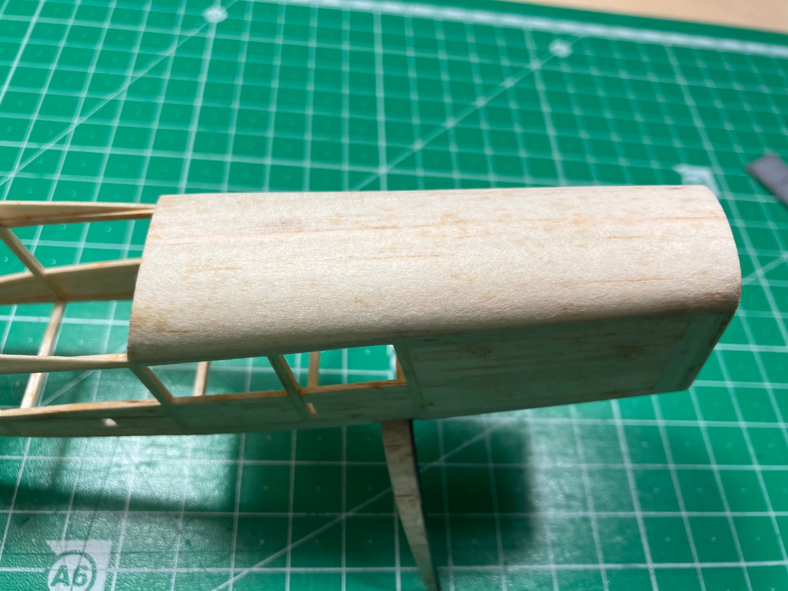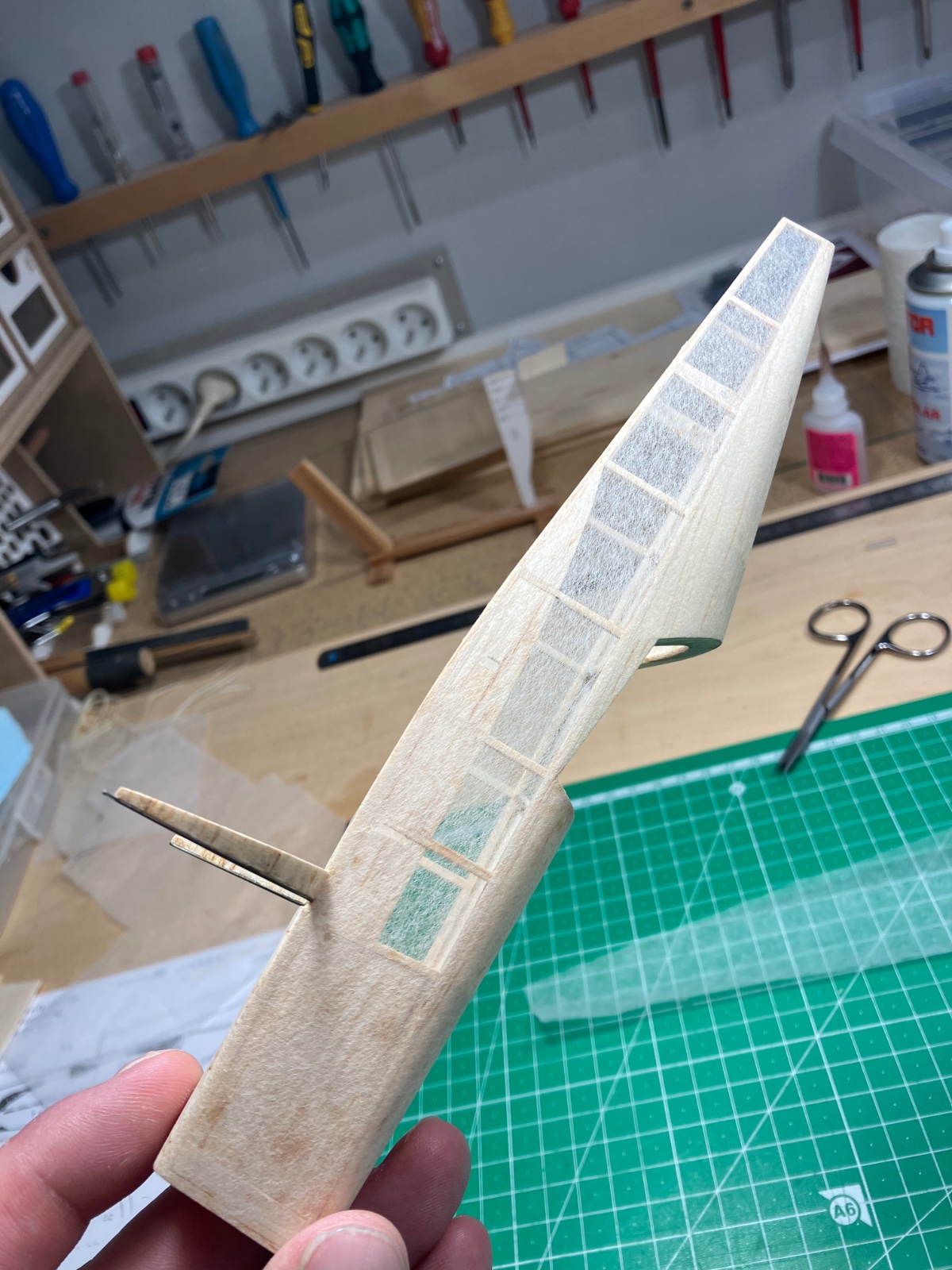 Budu se snažit i na tomto vzorku maskovat a stříkat. Přesně v půlce lamely vede hrana červeného kosodélníku.