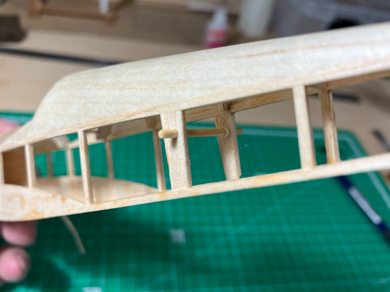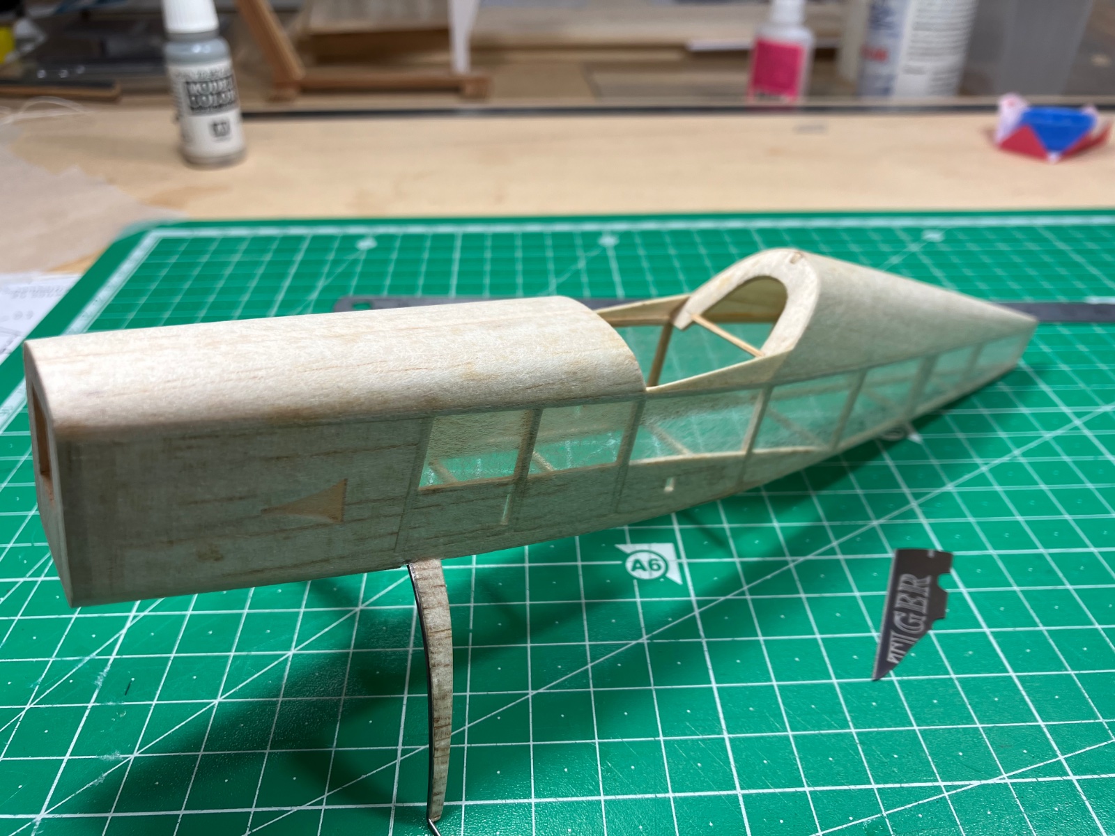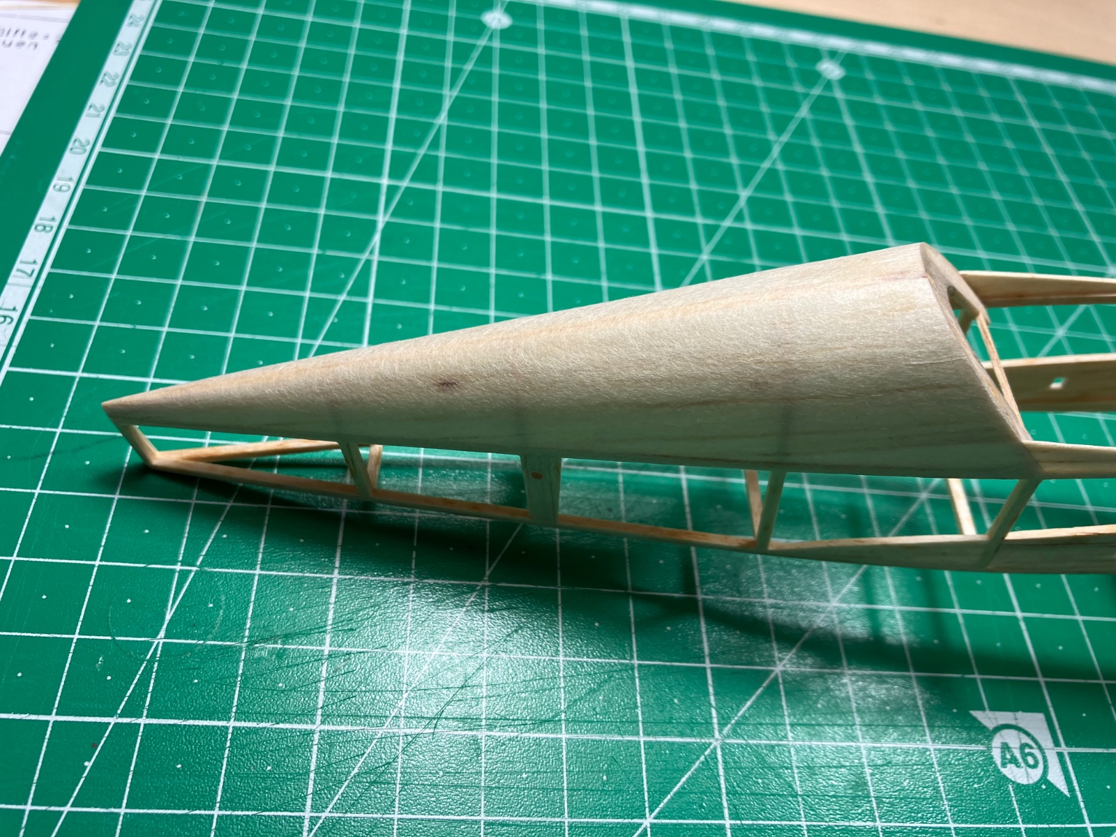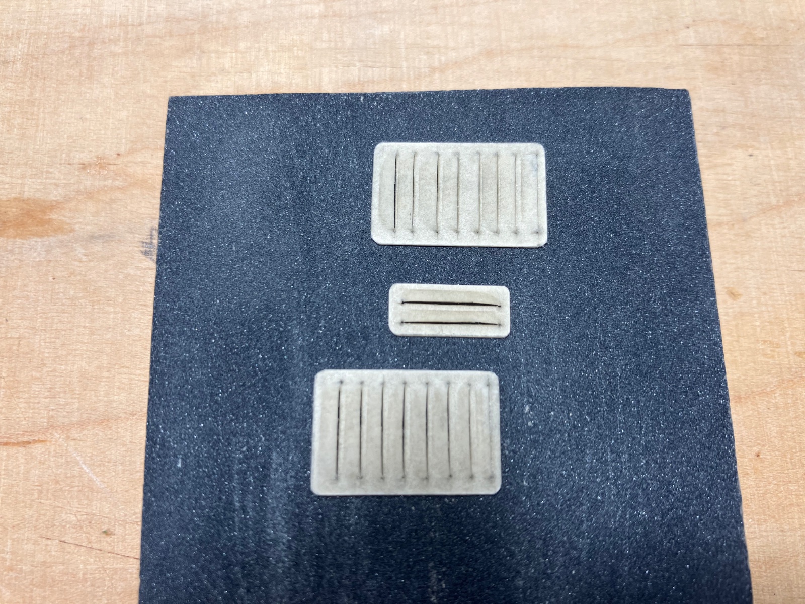 Budu se snažit i na tomto vzorku maskovat a stříkat. Přesně v půlce lamely vede hrana červeného kosodélníku.