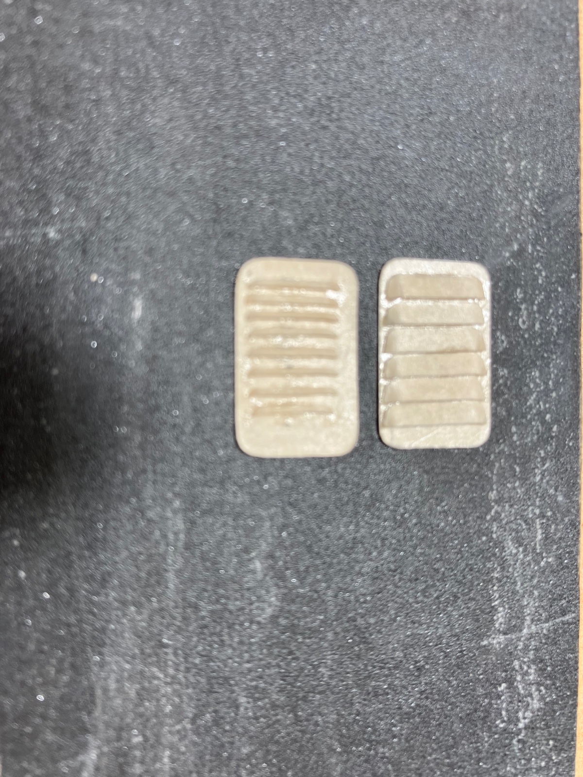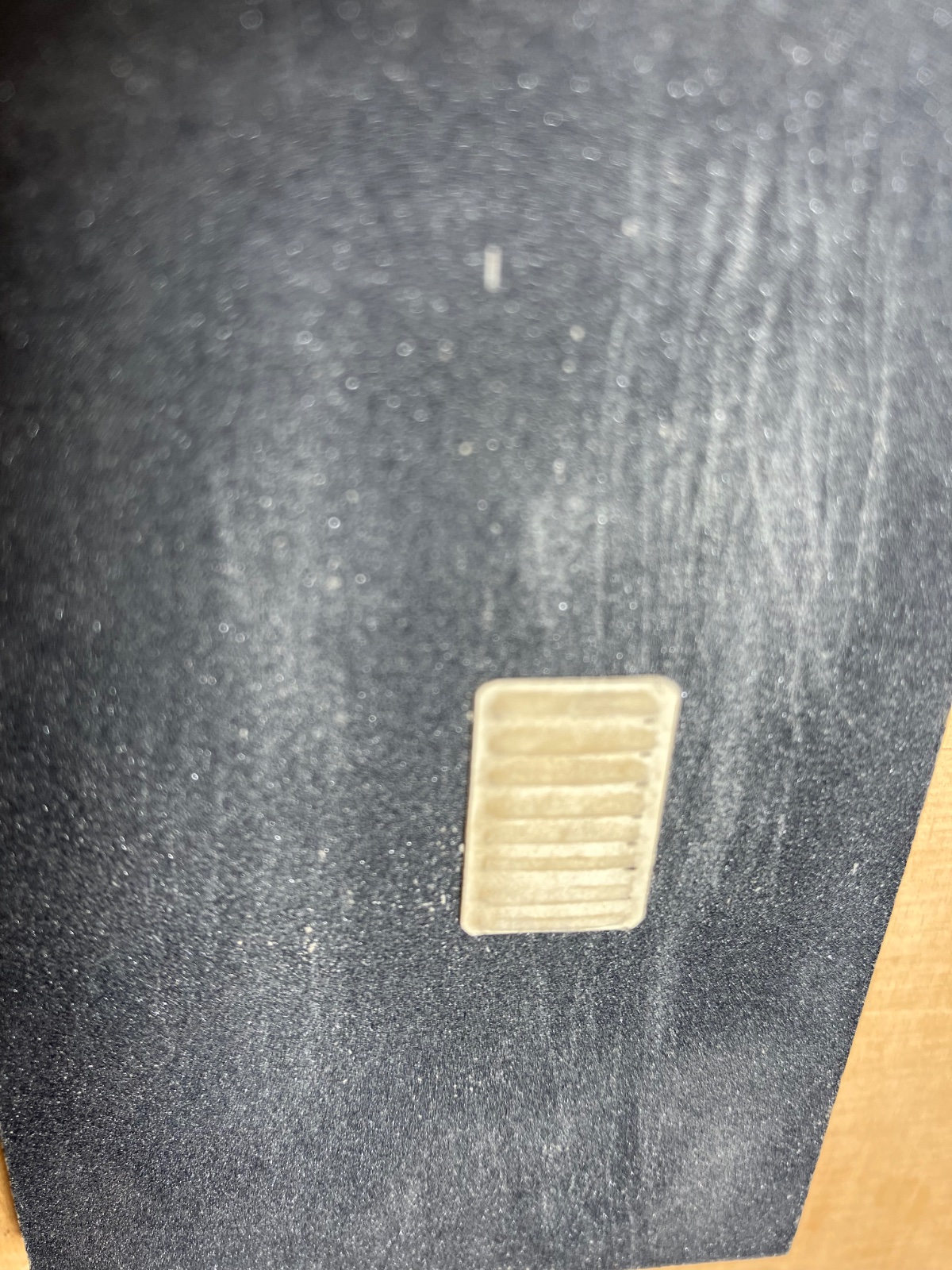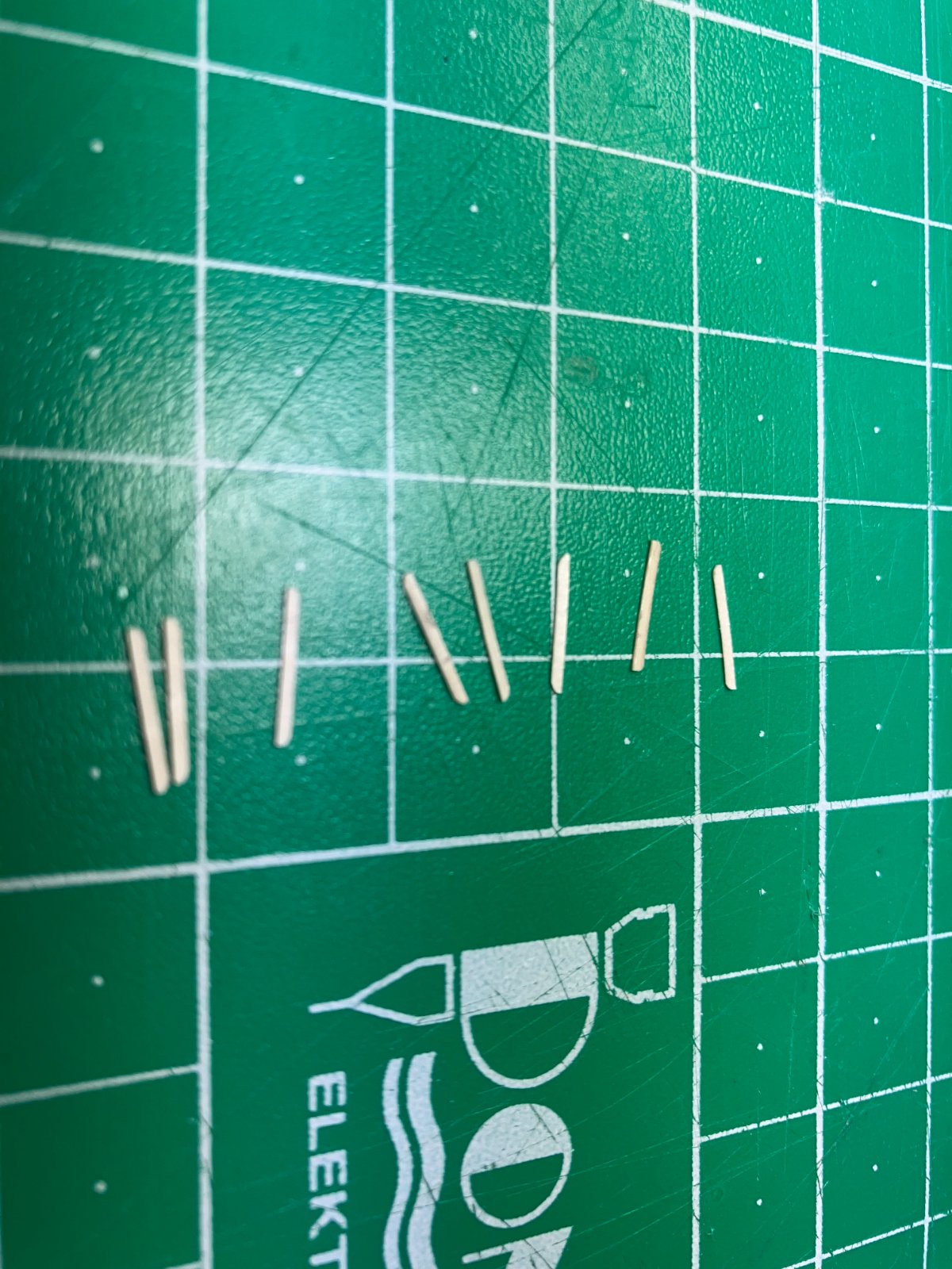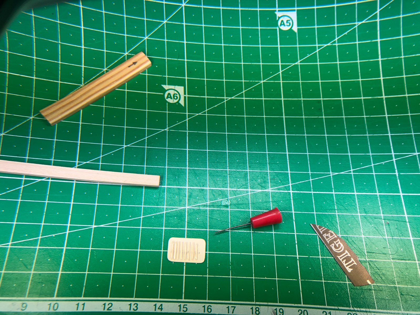 Štítek prolakován, obroušen, uříznut na šíři lamely, zkrácen na délku lamely, pod lupou dotvarován, přes přípravek ohnut a následně pod lupou nalepen na místo.