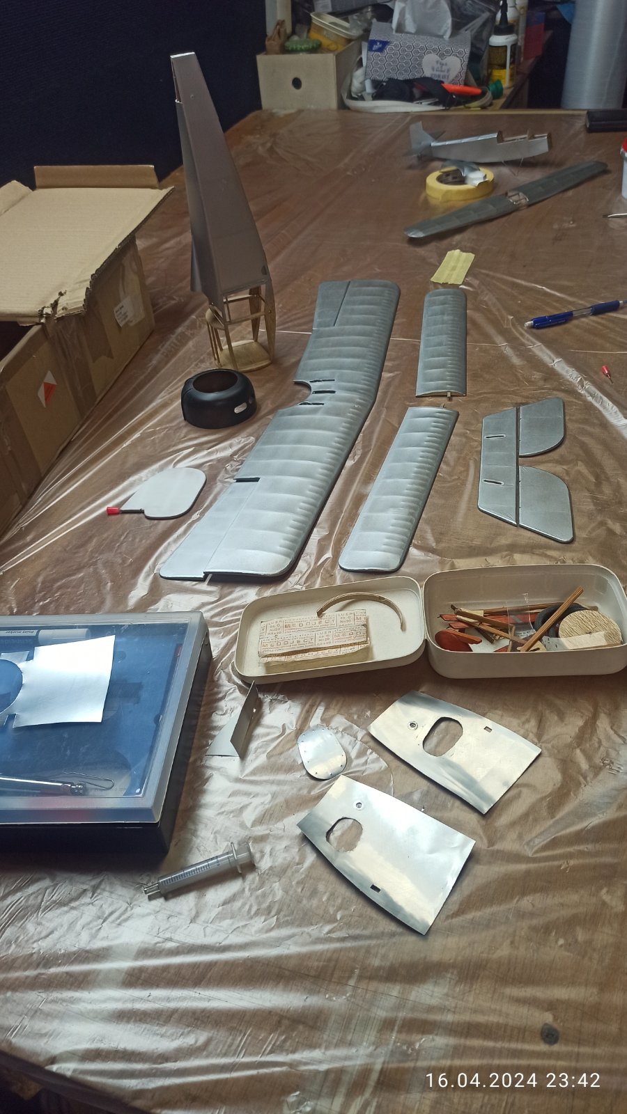 Děkuji Roberte on ten plech na fotce vypadá lépe přeci jen tam na živo nějaké vlhký jsou. o vyoseni vím zvětšoval jsem ho dost i u toho Rc mám rád když to lítá co nejlépe samo proto i neplanuju nějak markantně zvětšovat vzepětí jen jsem nechal prohnuty hlavní nosník (jinak bych řezál znova z jiného prkna) tak je horní křídlo lehce do luku. Krom jedné vrstvy laku jsem se dál nehnul takže me standartni nízké tempo :(
