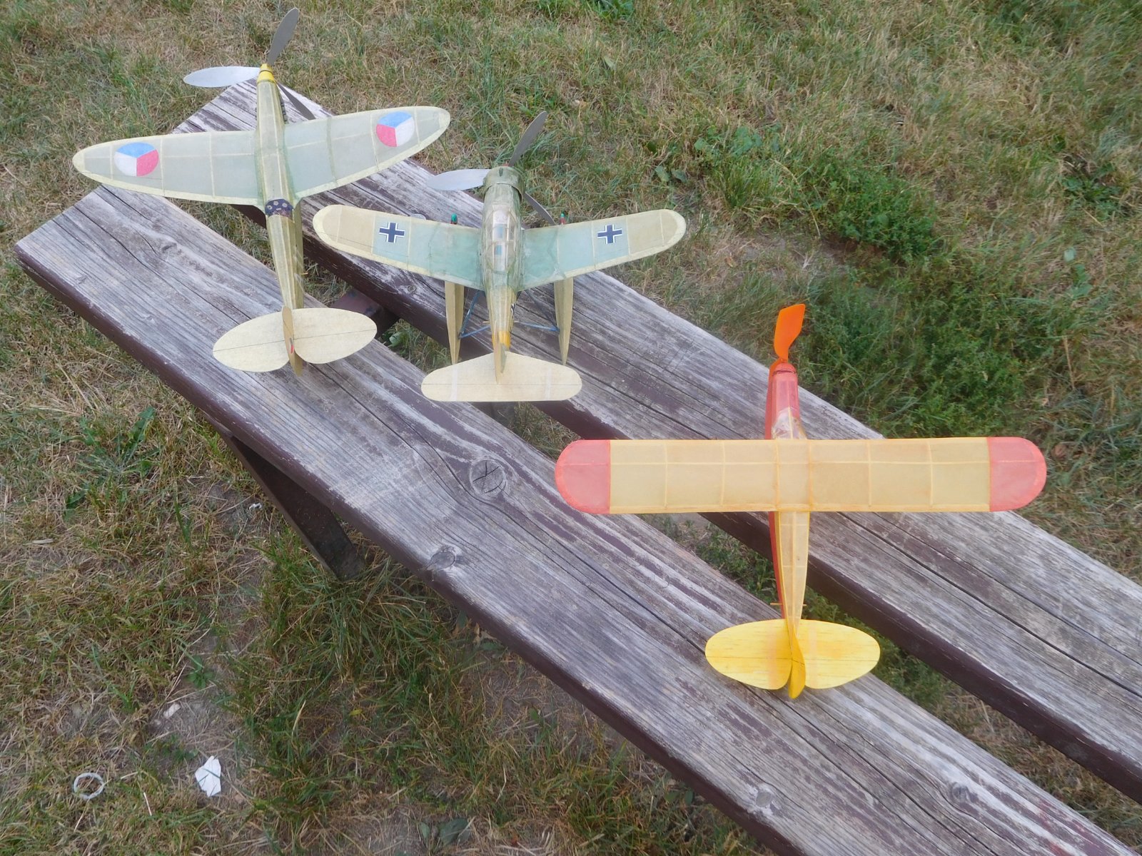 Před časem jsem postupně postavil Cadeta, Caudrona, plovákové Arado 196 a Bucanera. Nádherné počasí konce letošního srpna a začátku září s naprosto bezvětrnými rány a podvečery mne nalákalo na poletování s IPRO modely na mém travnatém plácku mezi vysokými paneláky, parčíkem a dálničním přivaděčem o rozměrech 90 x 45 m. Také jsem chtěl pořídit nějaké letové záběry, což ve stísněných podmínkách a mém foto vybavení není snadné, malé modely jsou rychlé a nelze je natáčet na lety delší půl minuty, jinak skončí na střeše paneláku, na stromech v parčíku, nebo pod koly aut na dálničnín přivaděči. Staré svazky z měkčí gumy byly zcela zteřelé, udělal jsem nové z dobré, tvrdší gumy TAN SS 01/2015, která má Kmax 10,7 při 25C.