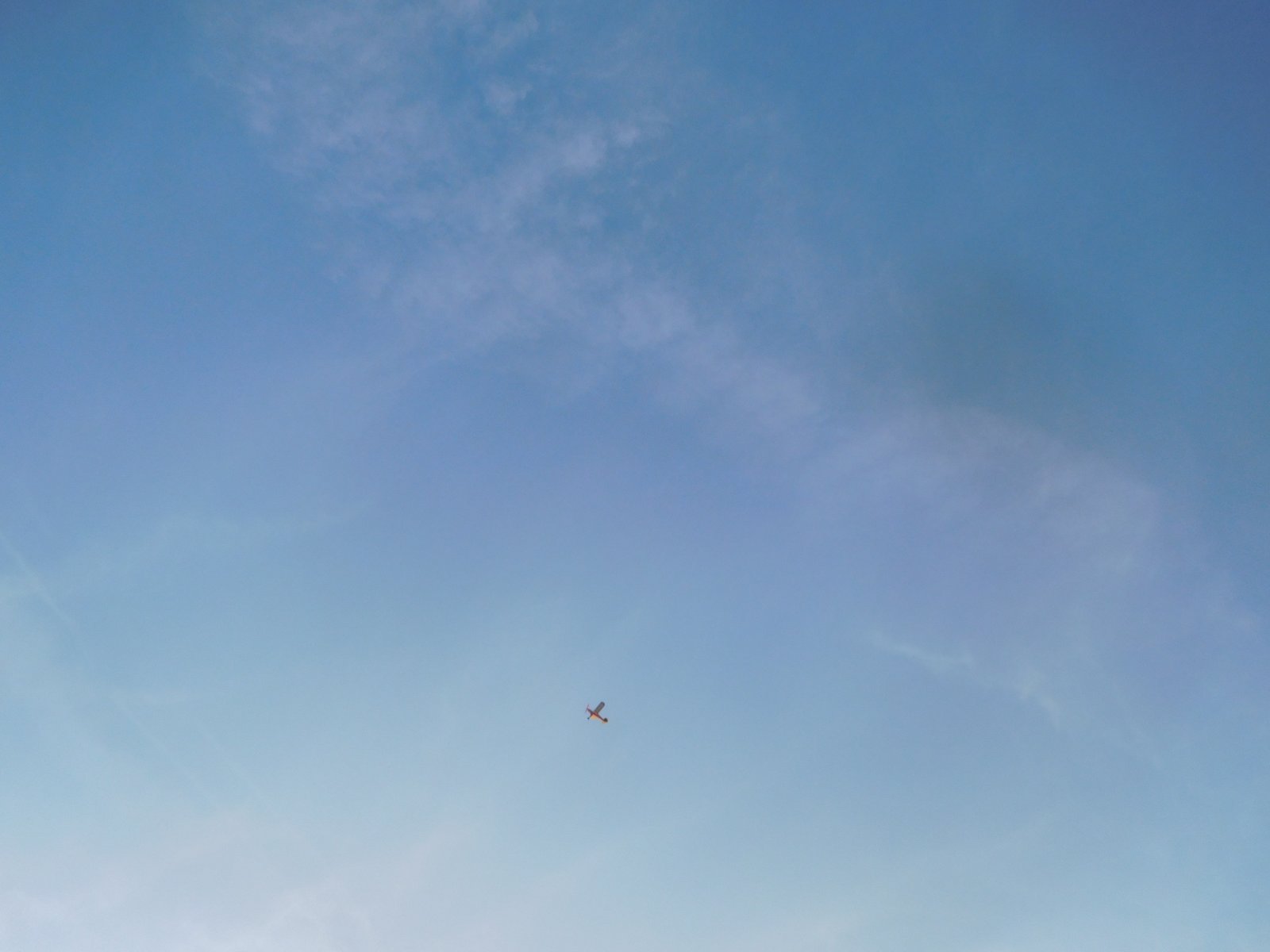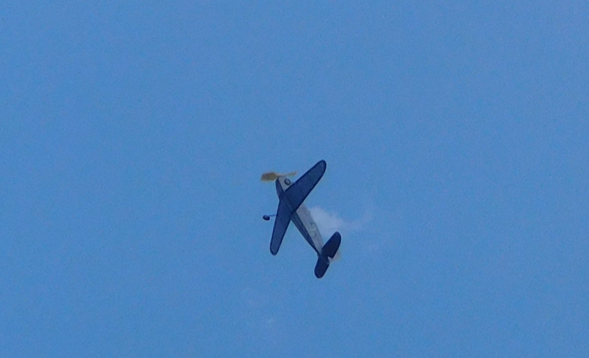 V 9hodin ráno bylo bezvětří, vzal jsem na plácek u dálnice peanuta Skylark a dva modely IPRO Caudron a Arado 196 ,které jsou také peanuty. Skylark létal hezky, Caudron s novým svazkem L=4OO mm TAN 01/2015 3x1 Nmax 1800 ot natočený na 500 pohupoval, po natlačení VOP to bylo lepší a tak jsem zkusil 800 a výsledek byl šok, výška 25m a riziko, že model skončí na stromech, naštěsí po 25 s motor končil, vypadla hlavice a model přistál uprostřed plácku.
