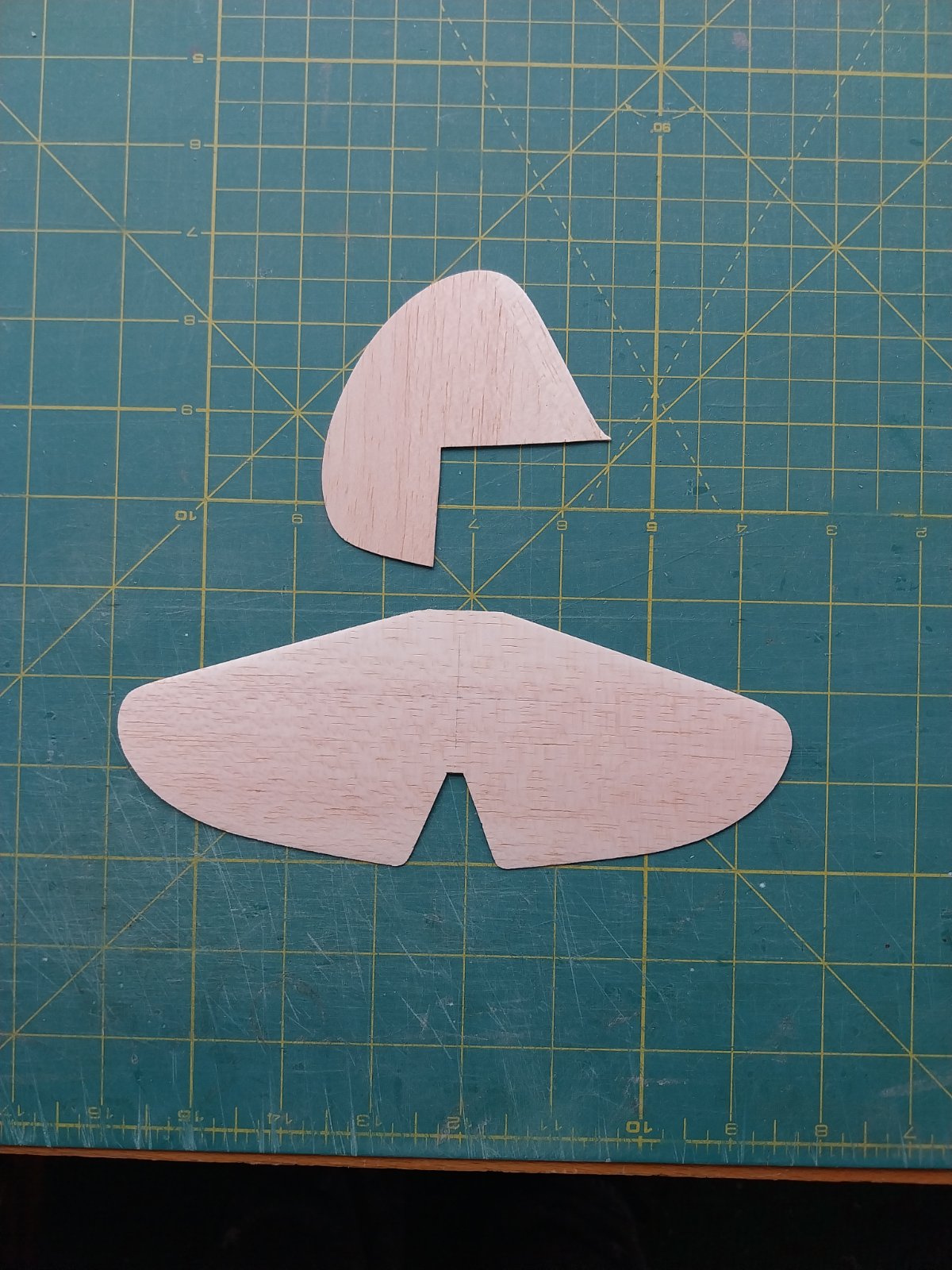 Tak jsem udělal ocasní plochy z toho co jsem měl doma. Nějaké zrcadlo na té balze je ale jinou balzu nemám. Balzu si objednávám přes zásilkovnu a musím brát to co mě pošlou. Moc vám děkuji pane Koutný za naskenované stránky z vaší knížky mám doma vydání z r 1993 s názvem Dvacetinky. Nevím jestli ta hmotnost vybroušených ocasních ploch je velká nebo malá nebo dostačující. O kabinku bych měl zájem kdyby šla poslat přes zásilkovnu pokud máte tu možnost. Tu třílistou vrtuli si taky zkusím udělat. Děkuji také za popis obsahu vašich stavebnic. Jaká by byla přibližně lidová cena stavebnice pro důchodce z Vysočiny. Jinak nejsem z Prahy ale z Ledče nad Sázavou asi tak 30 km od Hav. Brodu