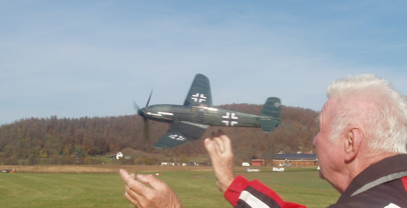 Včera byl krásný den, teplo, slunečno a bezvětří. Dnes ráno opět bezvětří, ale mlha a chladno. Přesto jsem do bedny nachystal dvacetinky He-100 D-0 a FIAT CR 42 DB a vypravil se na letiště Medlánky hned ráno trolejbusem dokud nefiuká (Petr má vycházky odpoledne a to již má foukat 2 m/s).Na letišti byli 2 RC modeláři a jeden se mnou spolupracoval na focení, První šel na plac He-100 na 1000 otáček krásné lety a přistání až na poli. Daří se pár záběrů i s mým starým Olympusem, kde focení není snadné, pak on bere svůj mobil a je to snažší. FIAT ze začátku silně houpe, po natlačení VOP se daří pár letů, Mám slíbeno, že večer dostanu vše e mailem. Pokládám Fiata na stůl a jdu si znovu zalétnout He-100, hezký let, vracím se a Fiata na stole nevidím. On přišel první závan větru asi 2m/s a ten model shodil dolů přímo na nějaké prkno tak, že horní křídlo je zase odtržené z kozlíku, některé vzpěry polámané, jiné odtržené. Čeká mne ošklivá oprava,