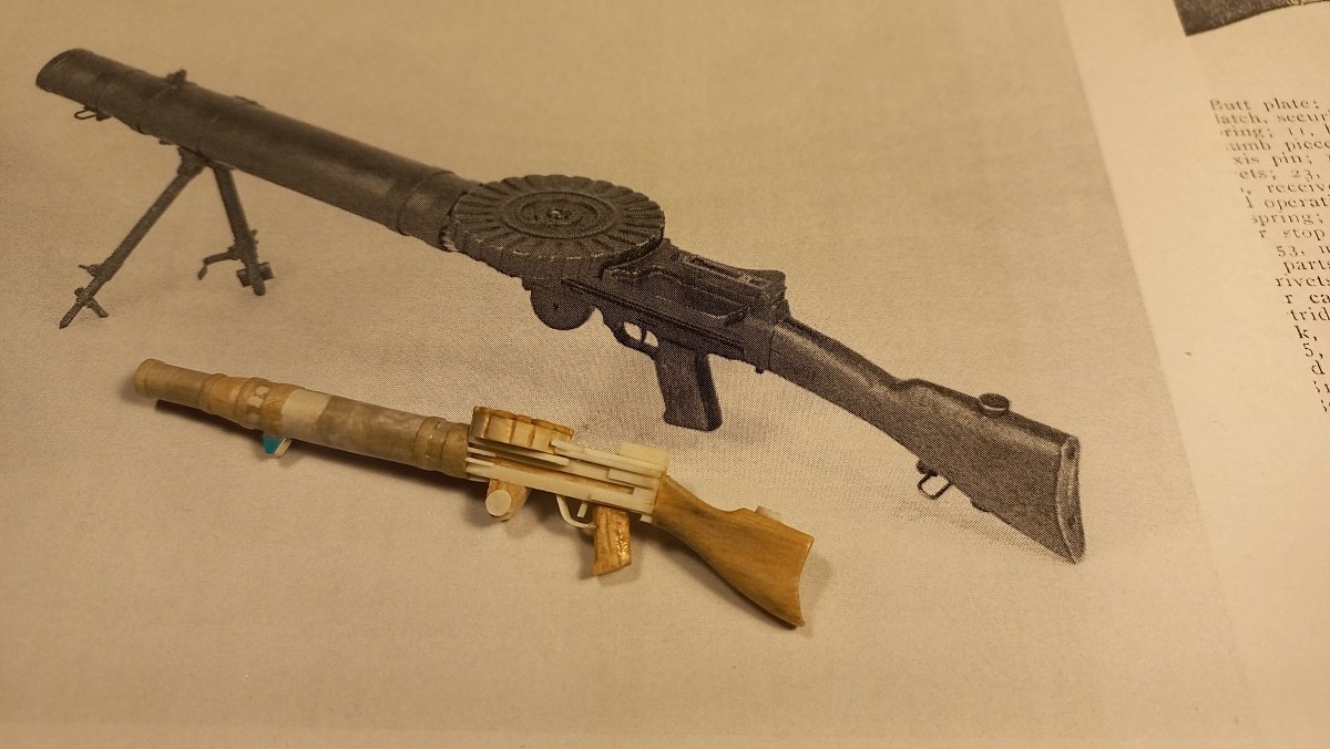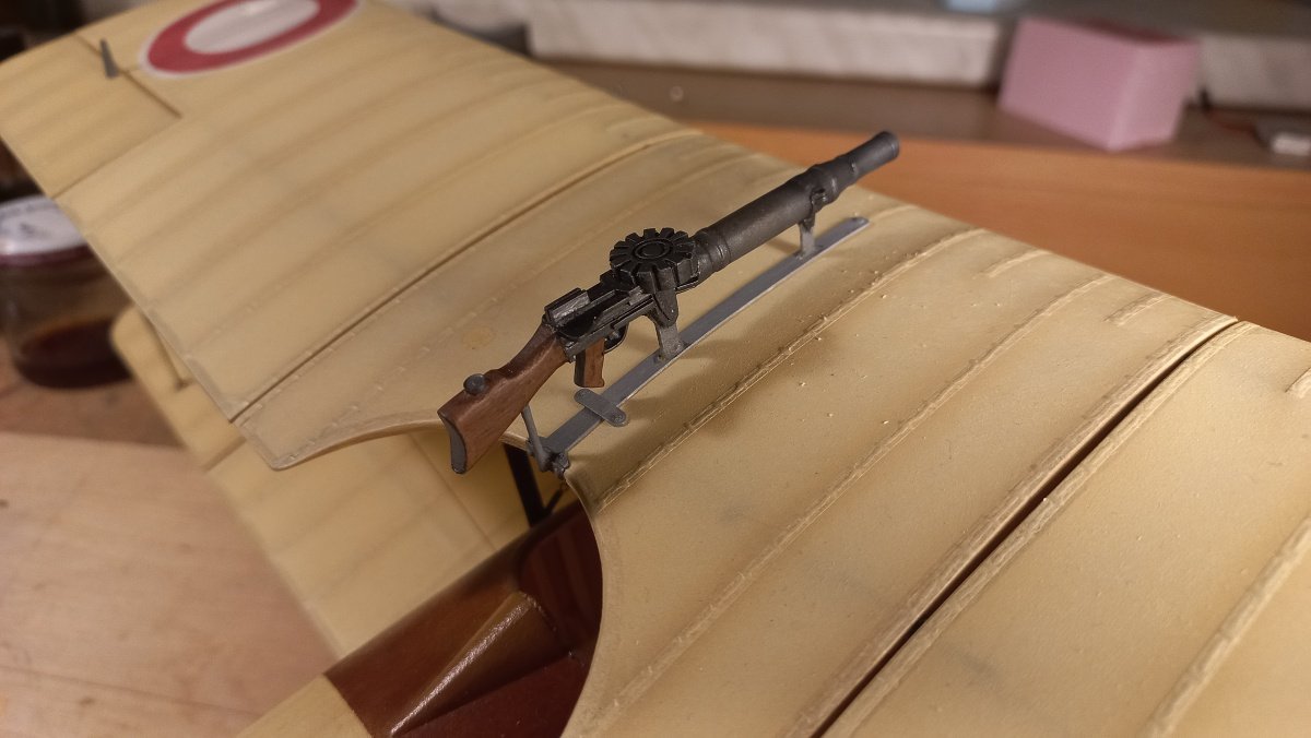 S čím jsem se celkem vydováděl byl kulomet. Tabloid nesl jediný kulomet Lewis, který ještě nebyl upravený odlehčením pro letadla. Zřejmě namontovali to co našli ve zbrojním skladu pěší jednotky, jen odmontovali dvojnožku