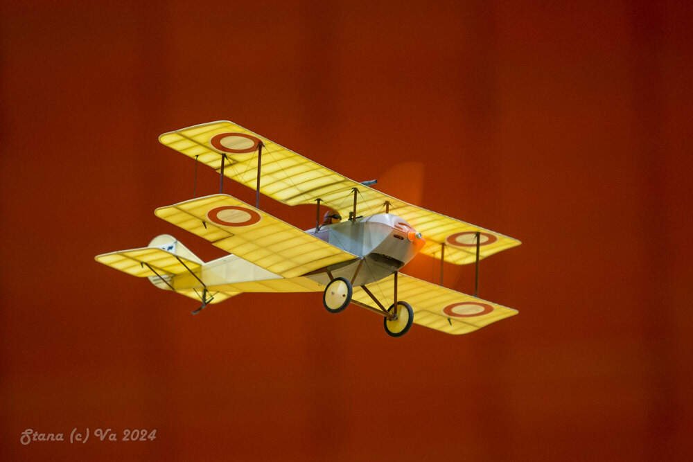 Na fotkách je vidět že už jsou osazena kormidla, u takto malých modelů jako panty zásadně nepoužívám žádné folie nebo lepící pásky ale jen pantíky typu osička-trubička. Pohyblivé plochy musí chodit naprosto volně, kontrolu lehkosti chodu provádím fouknutím, případně se musí otáčet vlastní vahou. Z obdobného důvodu nepoužívám bowdeny (pokud není zbytí - viz křidélka u F4U Corsair a He-112), ale balzová táhla na ocasní plochy a náhon křidélek torzní hliníkovou trubkou. V tomto případě jsou křidélka i na horním křídle, tak jsou spojena s dolními, torzně ovládanými, tyčkou z uhlíku opět v miniaturních pantech - jako u originálu. Je to dost náročné na přesnost ale funguje to spolehlivě - mám to ověřené na Elephantovi.