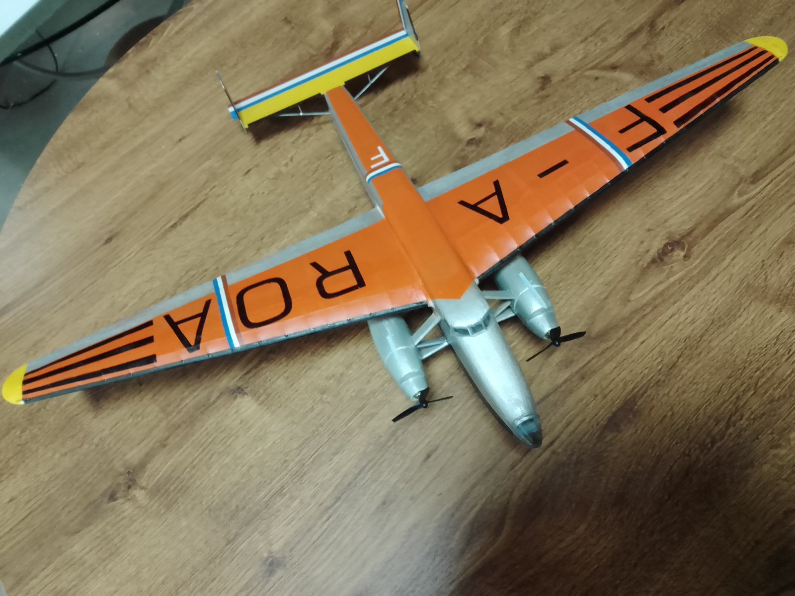 Zdravím přátelé! Dostala se mi do rukou polystyrenová hračka ovládaná motorama, jakože B17....tak jsem ji vykuchal a postavil na to vybavení tohle. Farman 223.4 Le Verrier.... ještě to chce trochu "kitařské" práce, ale jinak chodí luxusně... rozpětí 600mm... hračka měla 450mm?? Asi tak nějak.... už se těším na další... mám ještě jednu podobnou hračku...tak buď DH88, L200, Ae45...ale nejspíš Siebel 204D