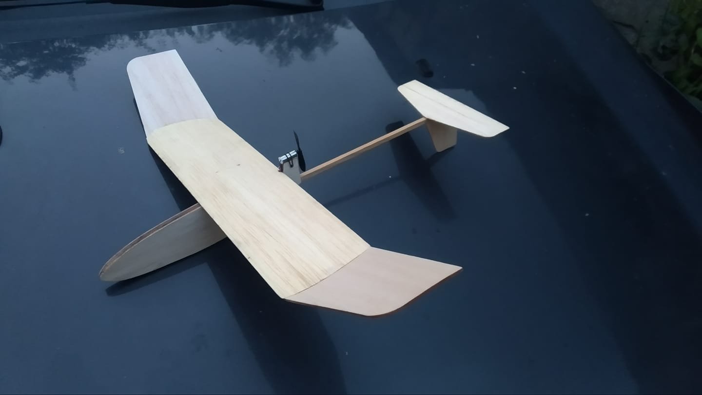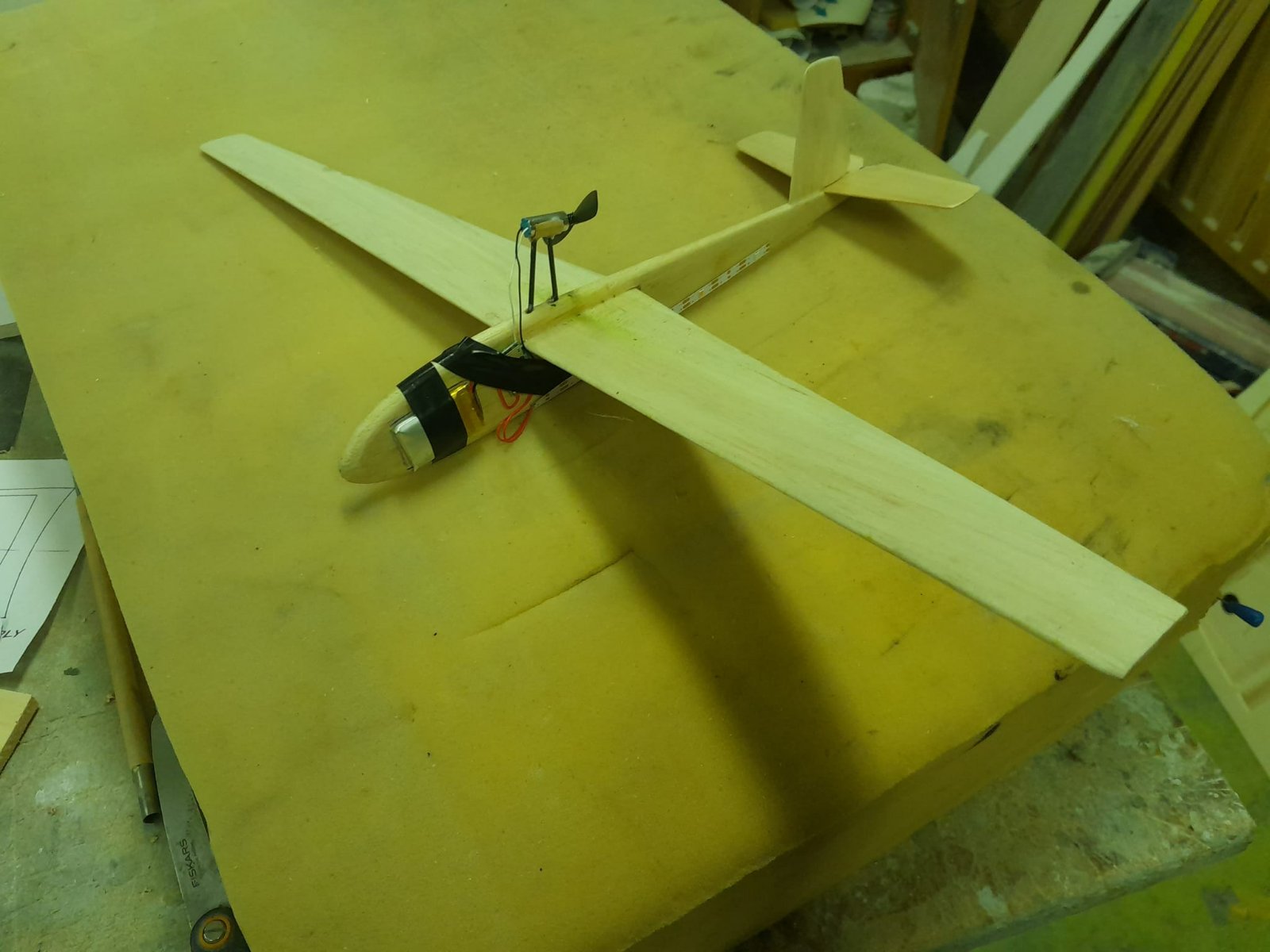Je to z této hračky: Jan Doubrava - je to takova variace na blanika s pomocnym motorem, rozpeti 500mm hmotnost 21g. V planu je to udelat cca 650mm. Ten pohon je dobry divocak