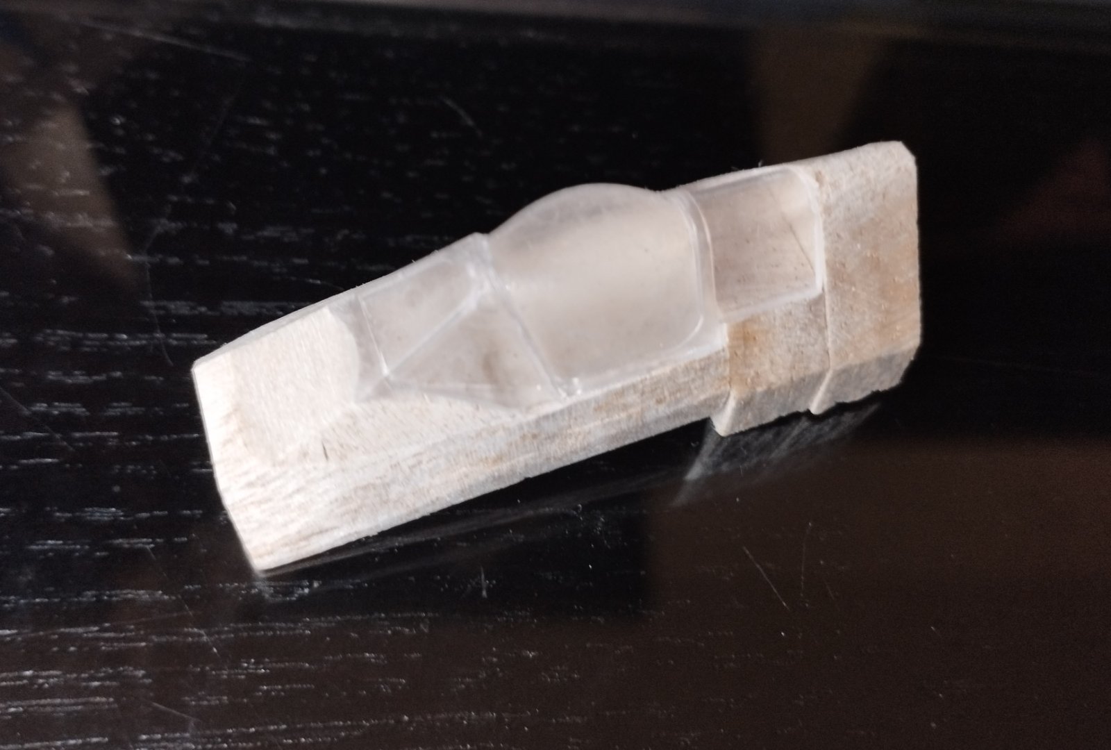 Dlouho mi doma ležela stavebnice kitu Spita v měřítku 1:48, jehož rozpětí v tomto měřítku odpovídá kategorii Pistácio. A jelikož jsem líný, napadlo mne pár dílů použít jako mastery pro stavbu polystyrenového. Jako první jsem využil kabinu, kterou jsem sice znehodnotil, protože jsem ji pro potřeby lisování potřeboval „prodloužit“, což mi ale zas tak nevadí, protože pak mohu mít výlisků kolik chci. Kabina má pěkně znázorněn vystouplý rám, takže v budoucnu odpadá lepení titěrného nabarveného potahového papíru jako rámu. Vylisovaná je z Durofolu 0,15 mm. Možná by šlo na váze ještě více ubrat tak, že by kopyto bylo vyšší a tím pádem stěna výlisku slabší. Zkrátka prostor pro zlepšení je vždy.