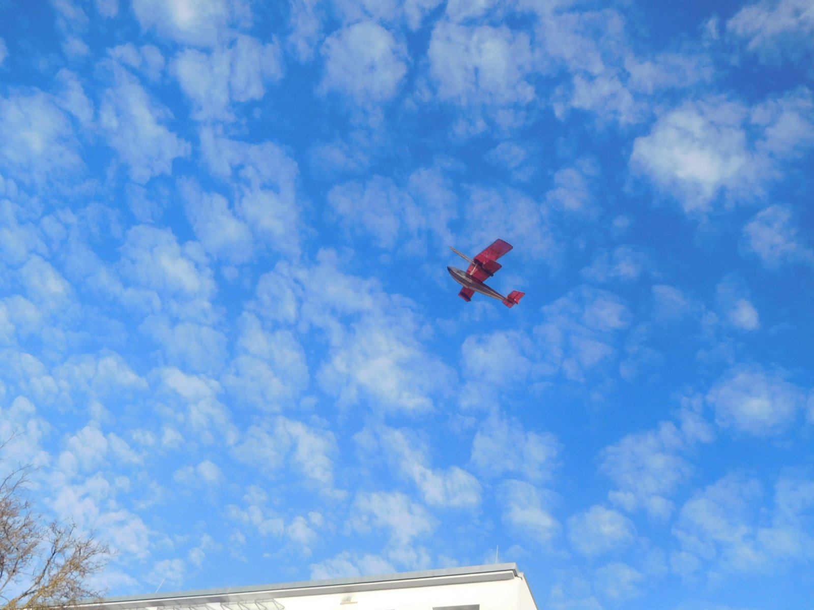 Asi bych měl poděkpvat za rady, jak foti proti modré obloze malý model pomoci předostření. Jenže tento ořísěk létajícího člunu Macchi M.7 byl focen při jeho nejdelším letu 40s a to jsem udělal 5 záběrů když v druhé polovině letu byl model poblíž paneláku. Takže na každý záběr 4 s a v té doběje třeba vybrat záběr, kdy je dobře natočený. Z těch pěti jsem vybral tři nejlepší a považuji to za maximum možného