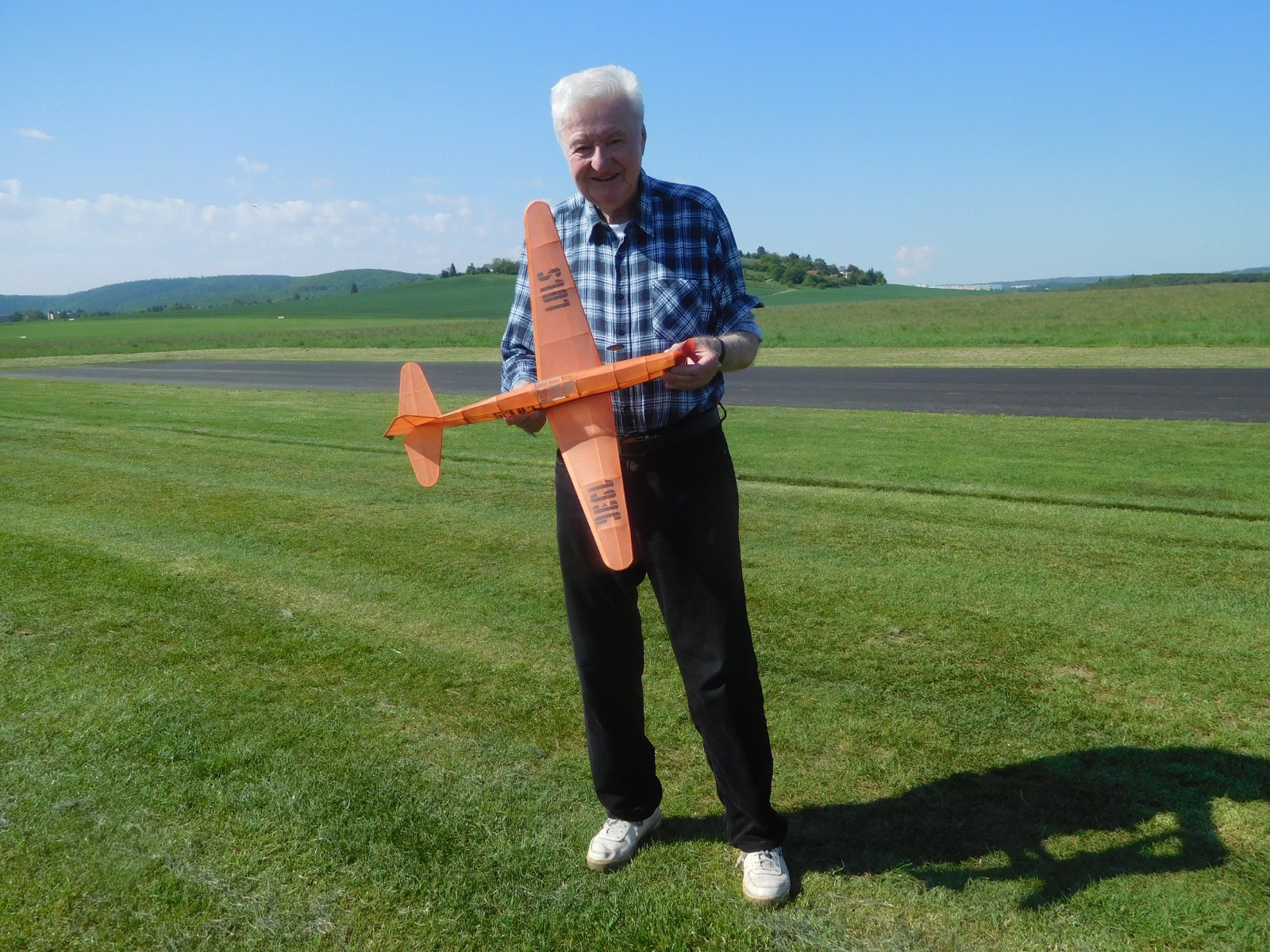 Takže včera jsem přemluvil syna Petra, aby mne jeho autem zavezl na Medlánky, on prohlašoval, že jen zaveze a hned pak pojede domů. Pokusil jsem se ho obměkščit čtvrtkou grilovaného kucřete od pana Svobody u Semilasa, jenže to znamená příjezd od Medlánek a bez hesla na tu pitomou závoru v mobilo složitě objíždět celé letiště, kde již byl plachtařský provoz. Složil jsem S.101 a připravoval onen determalizátor, To co doma dobře fungovalo, to se na letišti podělalo, ten silon mi se strhl pak sločité navazování a konečně natočení a zapálení doutnáku . Start v relativním klidu, na 1500 otáček výška 60m a tam termika, co čert nechtěl začalo to foukat směrem lesíku, či spíše Džungli, která je dnes v místech kam nás před sedumdesátli letech pan Husiška nahíněl na výstavbu dráhy pro účkaře. Ta byla hotová v době, kdy létání s účky končilo a přecházelo se na RC. Ta místa zarůstala náletovými rostlinami a dnes je tam témšř heproniknutelná Džungle, Doufal jsem, že ještě před tou džunglí kopne deter, bohužel to se stalo až již byl nad ní. Pečlivě jsem zaregistroval směr a vzdélenost,jednalo se o cca 20 m v hloubce a 15m od levého kraje. Myslel jsem, že to snadno najdu. Ale již zamotný vstup do tohoto terénu byl o zdraví, sposta popadaných starých stromů, ostré trny šípkových keřů a agáty, spleť porostu tak vzájemně propletená, že udržet přímý smě bylo nemožné, Po hodině marného pátrání vidím že hledá i Petr zjišťjeme, že zelená klemba je tak hustá, že i pokud na ní model sedí, tak ho ze spoudu neuvidáme, Petr proto jde na kopec a doufá že tak model uvidí, já jdu k PC modelářům s dotazem zda někdo nemá don s kasmerou, bohužel obojí marně . Takže se vracíme. po dvou hodinách mne Petr voká, že zahlédl nějakou oranžovou skvrnu 3 m od kraje lesa, když šel blíže tak ji ztratil, ale po rozhrnutí porostu se model objevil ve výšce asi 8m zavěšený za svazek přepadlý přes větěv, začalo pomalé sundávání ohýbáník tenkého stromu na které model visel, Nakonec jsme jej sundali bez poškození.