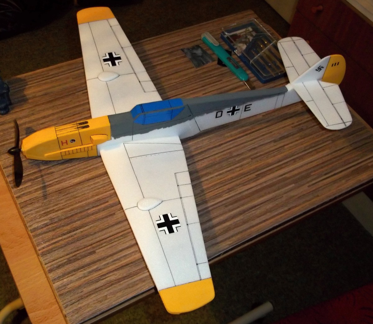 Příšerka jako cena je hotová, snad to bude i létat. Vím, že to nic není pro ortodoxní maketáře, ale na vyblbnutí to bude dobré. Jeden takový model jsem dal do model. kroužku v Zábřehu a docela to děcka těší, když venku létají s volňásky.