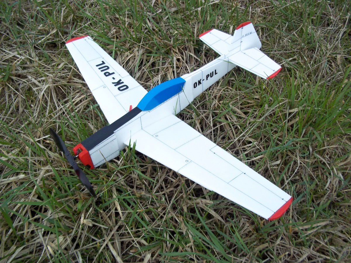 Dnes jsem byl zalétat model Zlína. 100% výkonu je jenom 15 s a ve druhé fázi je nastaven na 30%. Byla rosa a nechtěl jsem v mokré trávě daleko šlapat. Zdroj 100mAh se ukázal jako nedostatečný, dám tam baterii 350mAh, bude více startů na jedno nabití. Při prvním letu je zatáčka moc utažená, druhý let se již zdál dobrý. Udělal jsem z listů co prodával pan Poduška sklápěcí vrtulku, motor se tak snadno nevylomí. Děkuji za uspořádání příspěvků. Dávám sem ještě model. který jsem dal děckám do kroužku. Ten byl nezáludný a hned dobře létal.