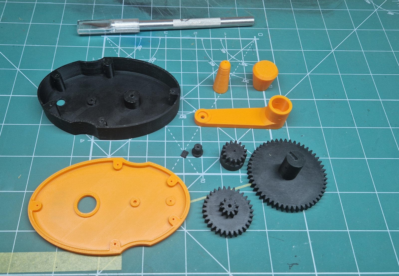 Našiel som dáta na výrobu natáčadla pomocou 3D tlače. Tak som si to skúsil doma vytlačiť a poskladať. Prvotné testy natáčania dopadli dobre. Ešte overiť pomer a doplniť počítadlo.Uvidíme, ako sa to bude správať pri pravidelnom používaní.