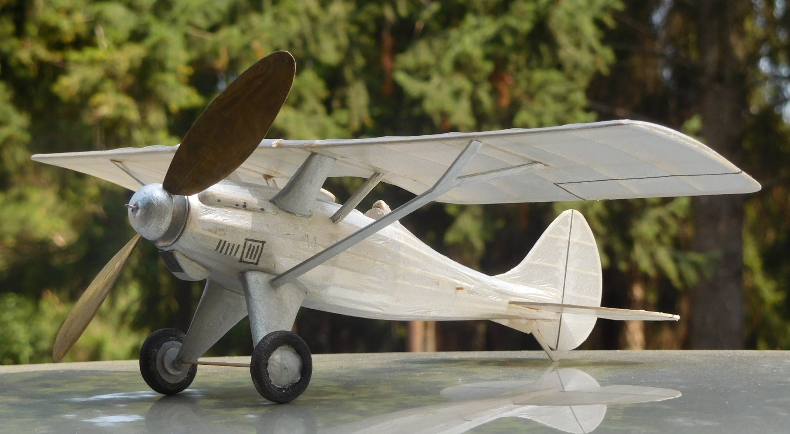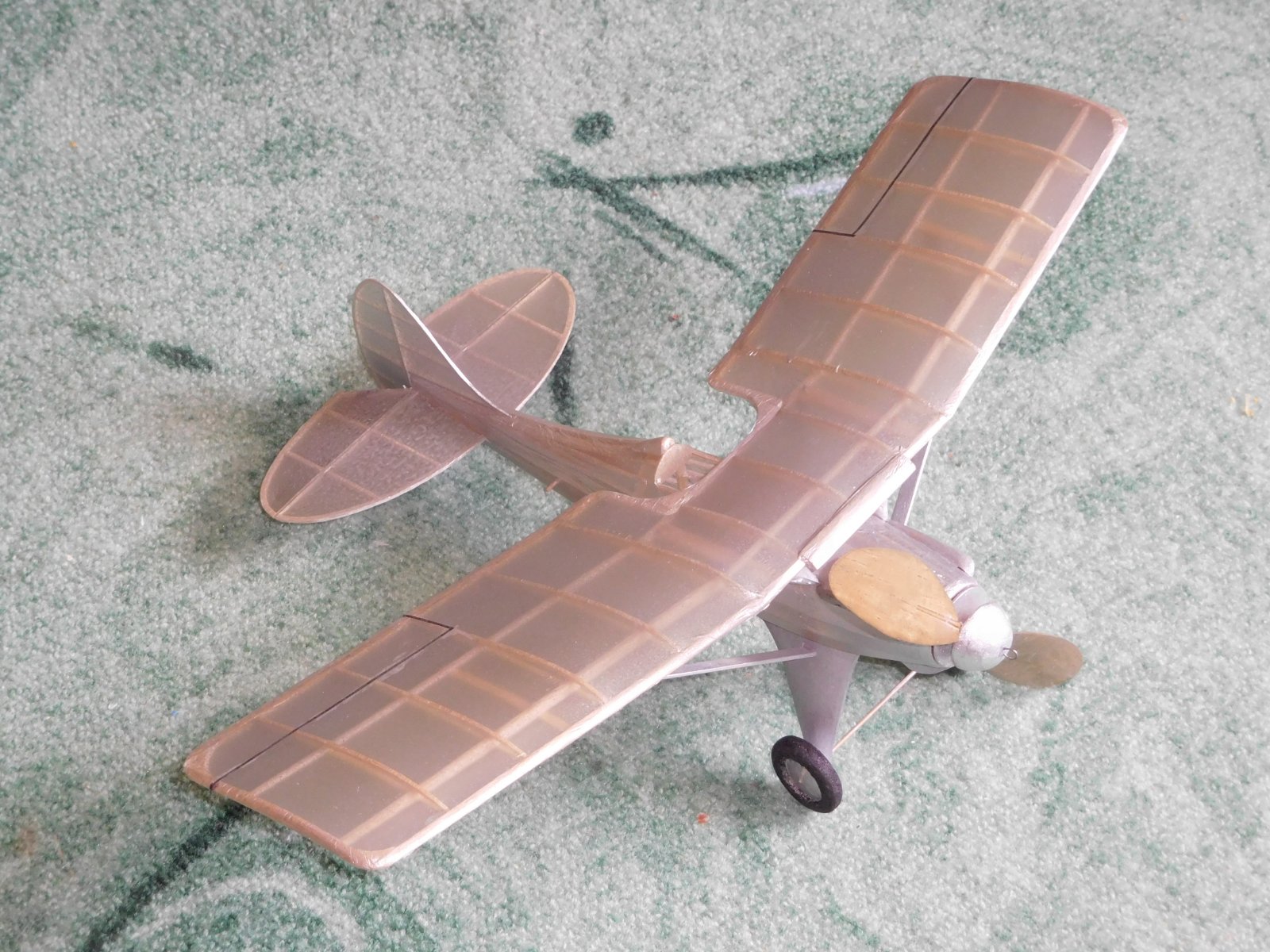 Ano, máš pravdu parasoly s křídlem do šípu, to je zcela jiná kapitola. Takový De Monge 5, který jsem postavil jako oříška před rokem, je super stabilní, fantasticky létající model, vyloženě pro radost. Létá výborně venku, snese i menší turbulenci a v hale ve Hluku sice kontaktoval strop, ale po nárazu se uklidnil, znovu přešel do stabilní zatáčky a krásně pokračoval v letu s přistáním uprostřed haly. Výborně létá Alferyho dvacetinka Morane AI. Zato velká dvacetinka Morane Saulnier P, která nemá šíp je totální kopyto jak v mém provedení, tak i když ji postavil Zdeněk Vávra. Kupodivu ještě v době před dvacetinkami, když byla kategorie minimaket do 600 mm, tak můj velký a lehký Fokker D-VIII létal fantasticky a kupodivu stejně hezky pak i velmi lehká dvacetika Fokker D-VIII potažená zeleným plyspanem. Ovšem dnes, kdy trup a někdy i VOP jsou tištěné na PC lozenge, tak tento potah (z amerického papíru a tam také potištěný) mi vychází velmi těžký, je nutné dovažovat v předu a letové vlastnost dvacetinky jsou horší, to ovšem tak zcela neplatí u Fokkera D-VIII Tondy Alferyho, který je stavěný z jiných materiálů, jinou technologií a létá výborně.