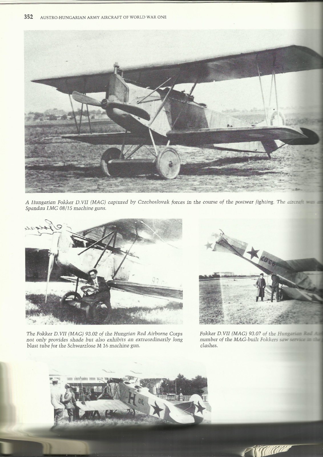 O tom, že slavné dvouplošné Fokkery D-VII z německé produkce měly většinou potah lozenge z nepravidelných šestiúhelníků jsem nikdy nepochyboval, o tom mne nikdo nemusí přesvědčovat. Otázkou je jaké ty šestiúhelníky byly u letounu z rakousko-uherské produkce v MAG a zda tam vůbec byly. V knize Austro-Hungarian Army Aircraft of World War One je několik fotek Fokkerů D-VII, ale na žádné není letoun s potahem z lozenge, to také nebylo ani na letounech, které po válce získalo Československo a Maďarsko.