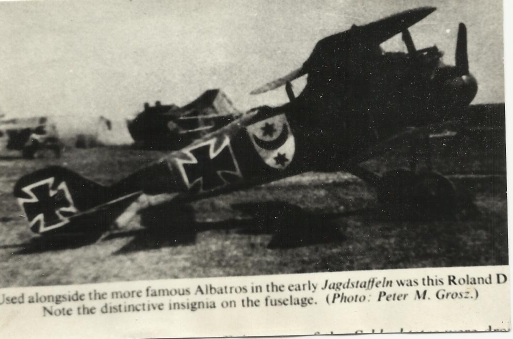 Před nějakými 40 ti roky chtěl Osvald Janisch stavět nějakou pěknou dvacetinku na Trnavskou první světovou. Nakreslil jsem mu plánek na Roland D-II, přidal dokumentaci a jednu fotku se zajímavým markingem (na boku trupu byl velký bílý štít s černým půlměsícem a hvězdami), tu jsem asi tehdy ofotil z vypůjčené knihy German Arircraft. Osvald dvacetiku hezky postavil a ta mu pěkně létala. Bohužel tu fotku již nemám a nemohu ji sehnat. Může mi někdo pomoci ?