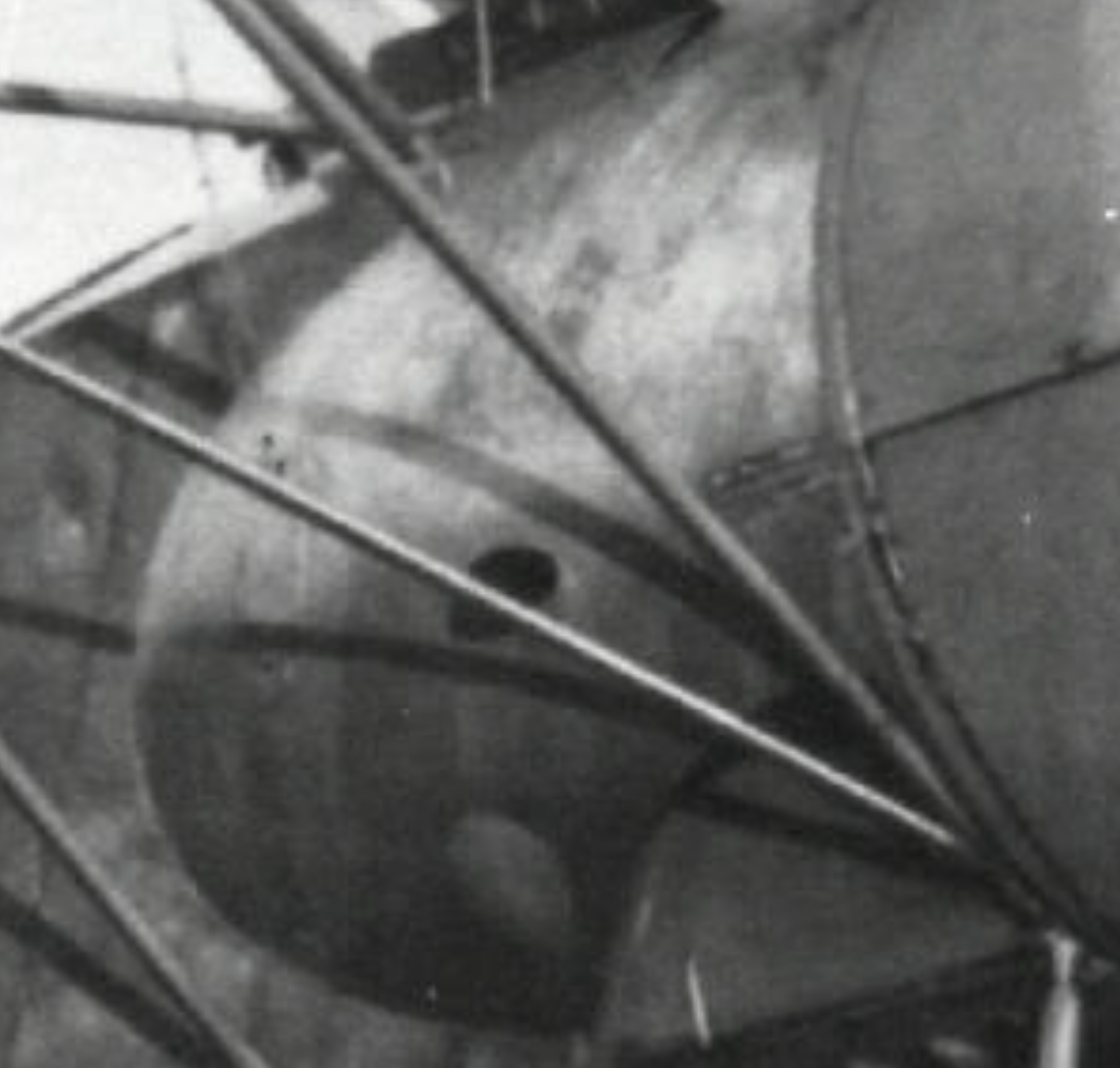 Ale mohla by byť aj varianta, že čo ak šikmé pruhy na trupe nie sú pásy preglejky rôznej farby, ale že tie pásy sú namaľované./ Pozrime sa na prednú časť smerovky./ Na tieto pásy sa "poutieral" štetec s rôznymi farbami. /Dosť mi to pripomína kamufláž Šmolíka ŠH-1./