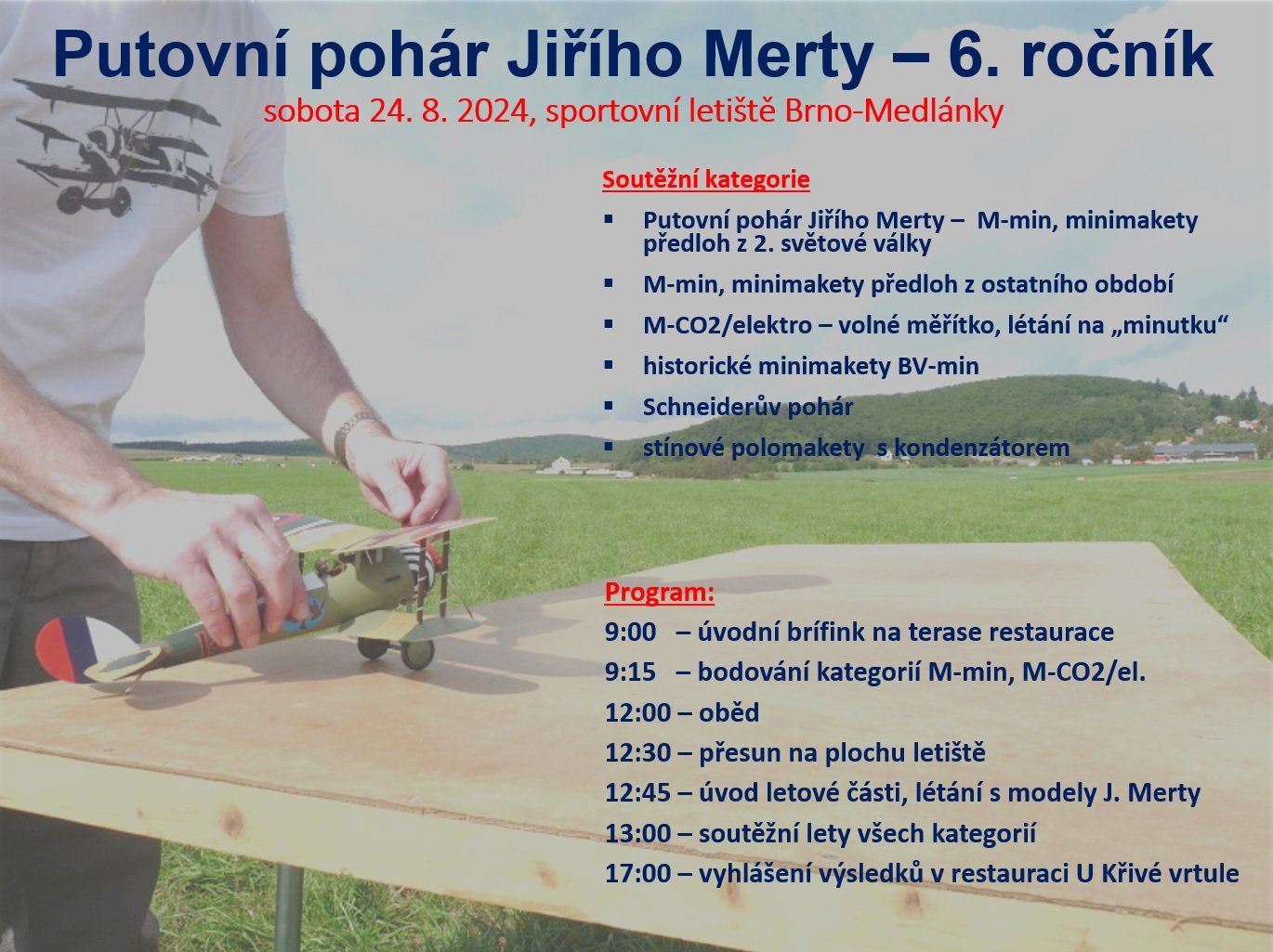 přijměte pozvání na 6. ročník soutěže Pohár Jiřího Merty, která proběhne na Medláneckém letišti v sobotu 24.8. 2024.