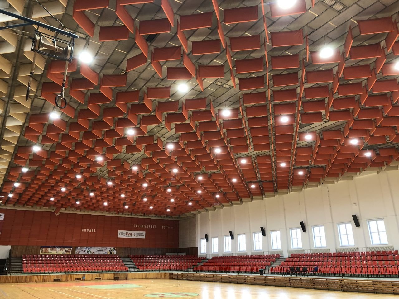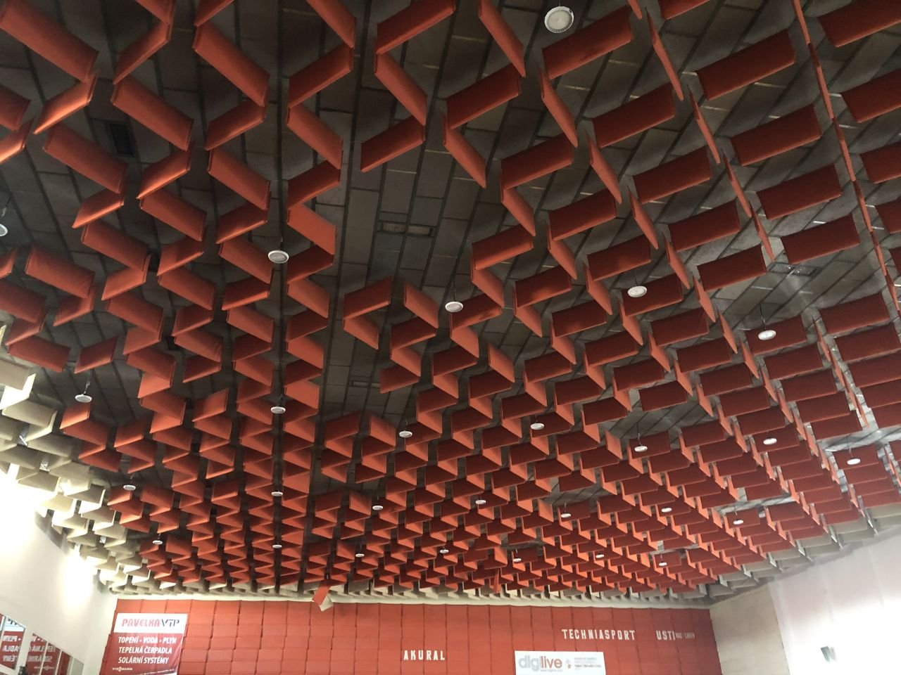 Jak jsem avizoval, v hale je nové osvětlení. Z letového hlediska se moc nemění. Světla mají spodní hranu na úrovni akustických desek, tělesa jsou menší než byla původní sodíková. Je jich víc a občas mění charakter F1N čtverců, ale s tím si zkušení soutěžící poradí. A světla tedy produkují dost. Bohužel v podloubí se nezměnilo nic.