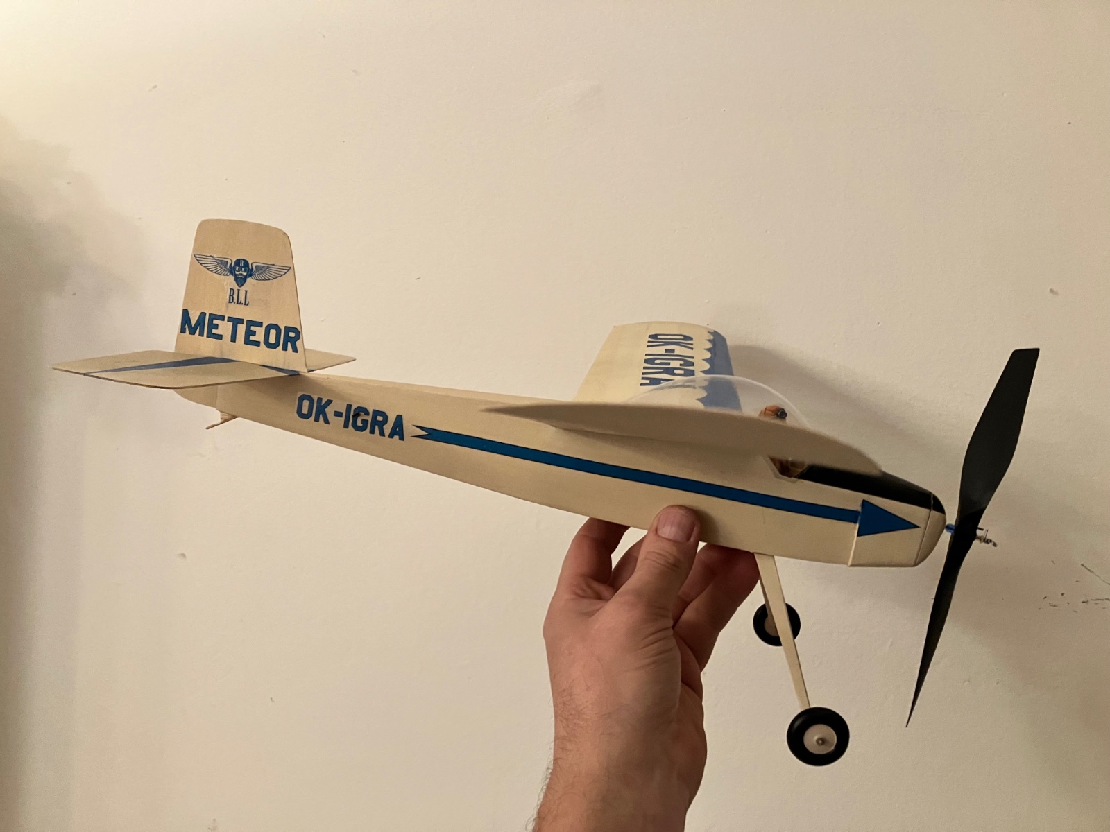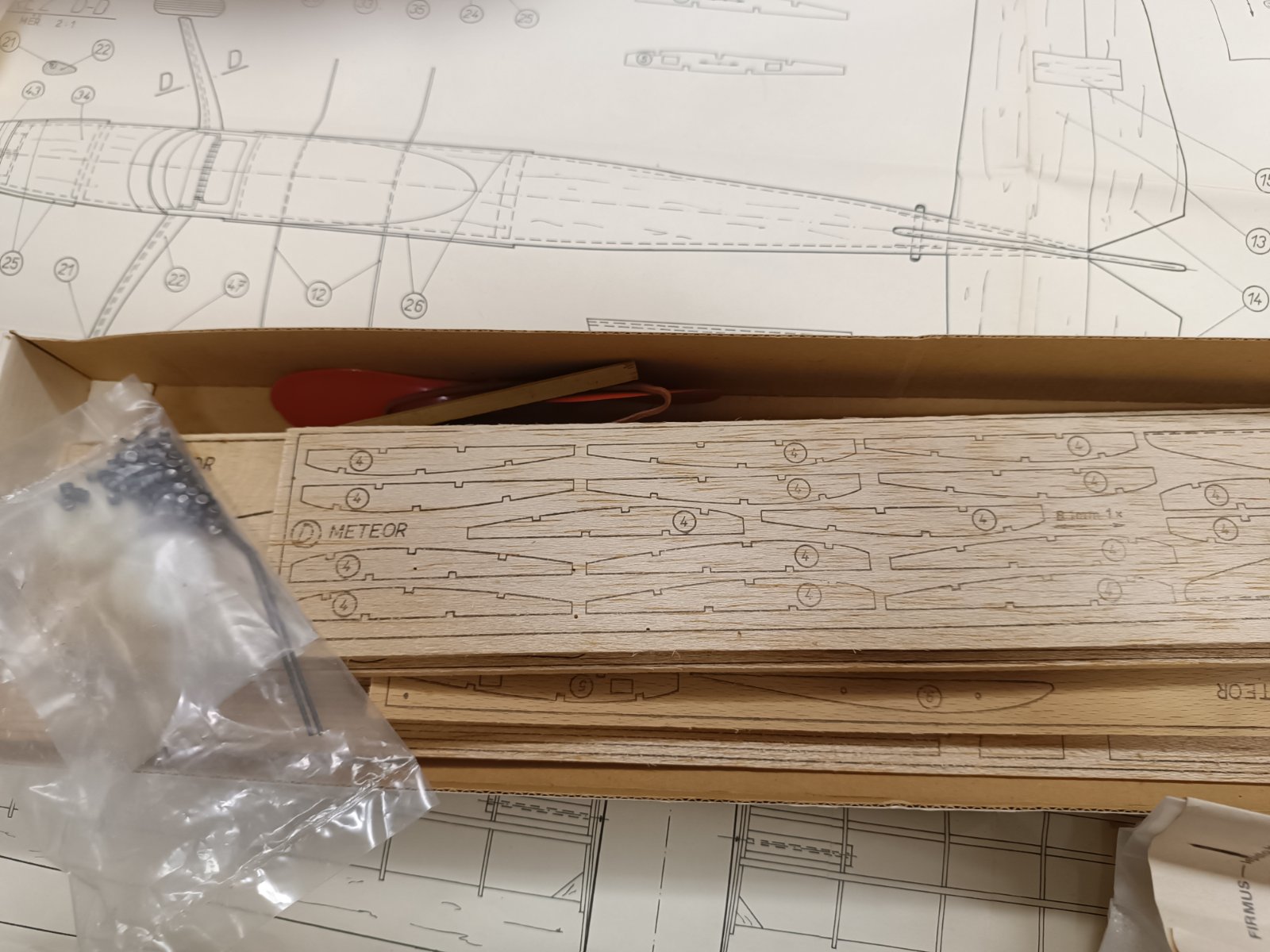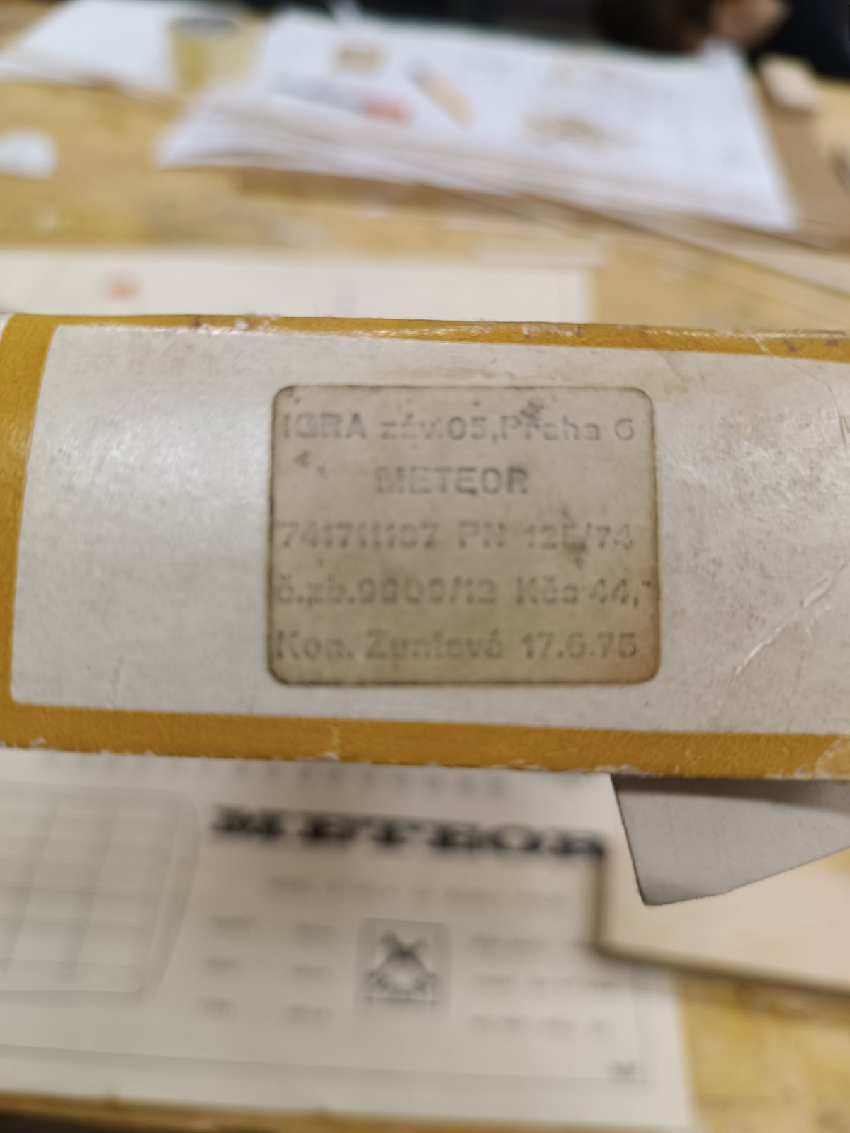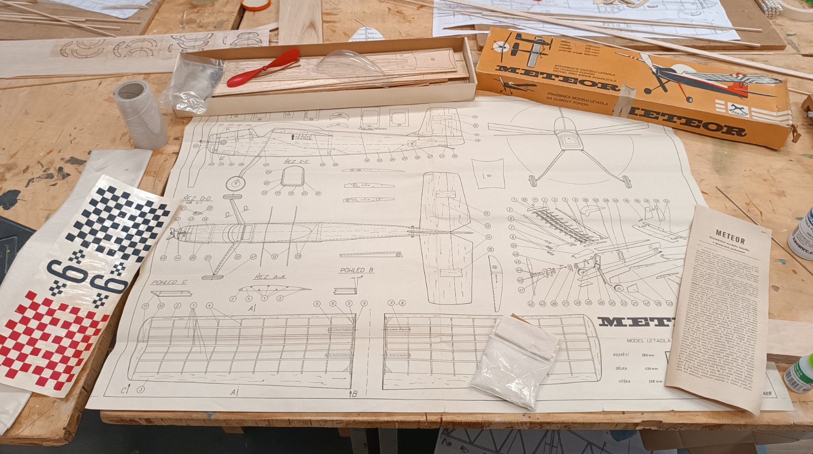 Zdravím , musím se usmát, jak si život dělá srandu. Zrovna v září jsme do kroužku dostali dědictví. A zrovna originál nerozbalená stavebnice Meteora . Rok výroby 1975 se vším všudy s kabinou, kolečky a vrtulí .PS - není to 150 igra . Dokonce i lepidlo na potah v prášku. Naskenovali jsme s kolegou plán i potištěnou balsu . Kdyby měl někdo zájem skeny zašlu. Jirka