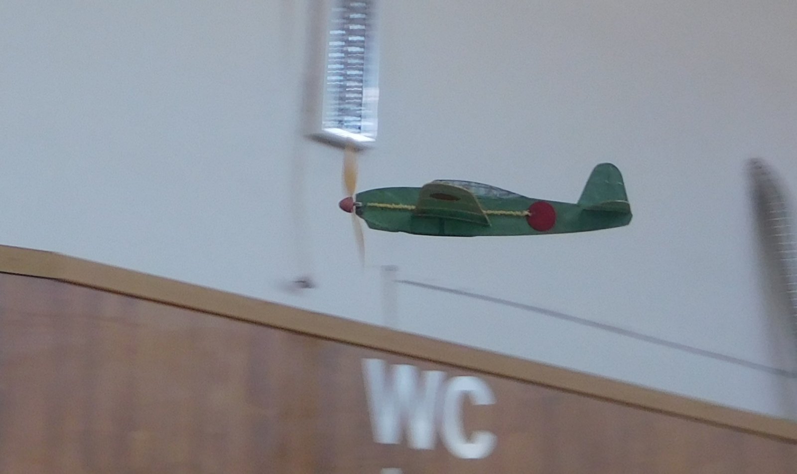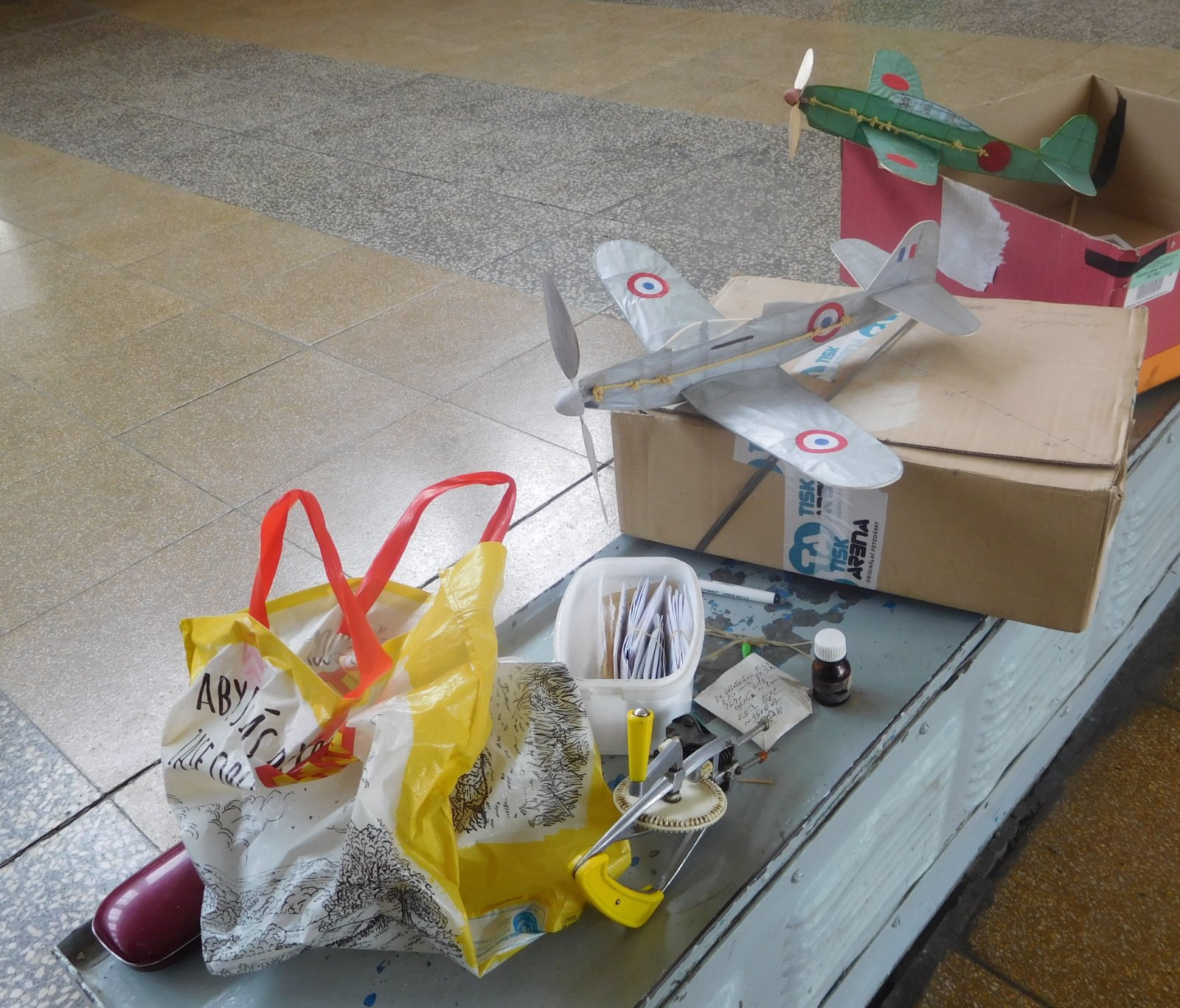 Termín bourání a přestavby nádraží se blíží, již proběhly úpravy okolí a demontáž některých svítidel uvnitř haly, takže se snažím využít každý volný den, tak tomu bylo i na velikonoční pondělí, kdy jsem si létal za poledne, hala byla téměř prázdná, pouze jeden pár starších manželů nadšeně sledoval mé létání a jeden mladík byl zvědavý, z jakého materiálu jsou modely zhotoveny a za kolik bych je prodal. Před nějakým měsícem mne jeden starý aeroklubák upozornil na vitrínu se zprávou archeologú, která v první části popisuje archeologický záchranný průzkum před zahájením bourání nádraží, našli tam tisíc let staré žárové hroby. Druhá část úplnou senzaci, kostru pilota s kniplem v ruce, ohořelou po výbuchu paliva, ale na čele měla hedvábný samurajský šátek – kamikadze Pár lidí si přečetlo nyní více rozšířenou mystifikaci o archeologické senzaci – vykopávce japonského samuraje kamikadze ve službách Luftwaffe, který havaroval hned vedle nádraží. Někteří kroutili hlavou, jiní pochopili, že se jedná o vtip. Možná inspirace pro novou Svěrákovu hru Cimermann Samurajem. Chtěl jsem využít halu, dokud stojí pro přelétnutí oříšků. Prvně to byl dvoumotorový D.H. Hornet a P-63, Měl jsem sebou fotoaparát a chtěl jsem udělat nějaké letové záběry. No, musím se přiznat, že bylo hodně pokusů a málo úspěchů Ono odstartovat dobře plně natočeného oříška, když se vám na pravé ruce kývá na řemínku foťák, to není zrovna jednoduché. Navíc já začínal s tím nejnáročnějším s Oříškem Re-2005, tedy se stíhačkou která je po čertech rychlá, První let na 1600 otáček byl nádherný, výška až u stropu, pak asi 6 okruhů, na závěr otevřená zatáčka, rovný let přes celou délku haly a jemné přistání, Spoušť jsem mačkal 6x, ale ta reagovala občas se značným zpožděním, hned to, co se mi nelíbilo jsem mazal a omylem vymazal i nejlepší snímek. Další dva lety jsem si nastavil na foťáku přiblížení a mino jeden snímek mi model vždy ulétl, do úzkého záběru se nevešel Skylark létá přece jen pomaleji, ale fotky také nic moc, To lehké modely NO CALL, to je jiné kafe. Létají pomalu a na vše je dost času. P-63 točená na 1300 otáček látá stabilně časy kolem minuty do výšky asi 7m, venku v ternice pak dva fantastické lety se šťastným přistáním na perkoviští – příště letiště. JUDY pak natáčená na 1800 létala nádherně těsně pod stropem kolem dvou minut. Pak jsem podle nabídky typů na minimaketách postavil Hellcata, model má krátký předek, proto jsem, se snažil udělat kormidla co možná nejlehčí, přesto bylo nutné dovážit předek 2 g. Hellcat předváděl nejlepší lety asi minutu a často byl poškozen, nakonec skončil v popelnici. Nakonec jsem postavil to, co jsem chtěl již na začátku Mr. Smoothie, jenže jsem se bál, že moc dlouhý trup a nevejde se zatáčkou do úzké Krpolslé haly. První lety 9.4. byly venku na parkovišti, na 700 otáček tp byl oblet celého parkoviště, také náraz do větví smrku, sklouznutí. pád, vybrání ve výšce 3m těsne nad projíždějícím autem, a dokončení okruhu o průměru 50m. Pak teprve hala, postupné zmenšování zatáčky přihýbáním ložiska. Nakonec na 1600 otáček u gumy 1,7 g/m výška letu 9,5m čas 110 s. Ale focení nic moc, Takže 10.4, znovu do haly a létá se pouze s Mr. Smoothie stále na stejnou gumičku ta má již více jak 10 natočení, 2x praskla, znovu svázaná a natáčí se jen na 1000, to pro focení, pak na 1500 a model letí až ke stropu, 2x si ťukne vrtulí, nepatrně změní zatáčku, ale nakonec je z toho 111 s, Maximální spokojenost.