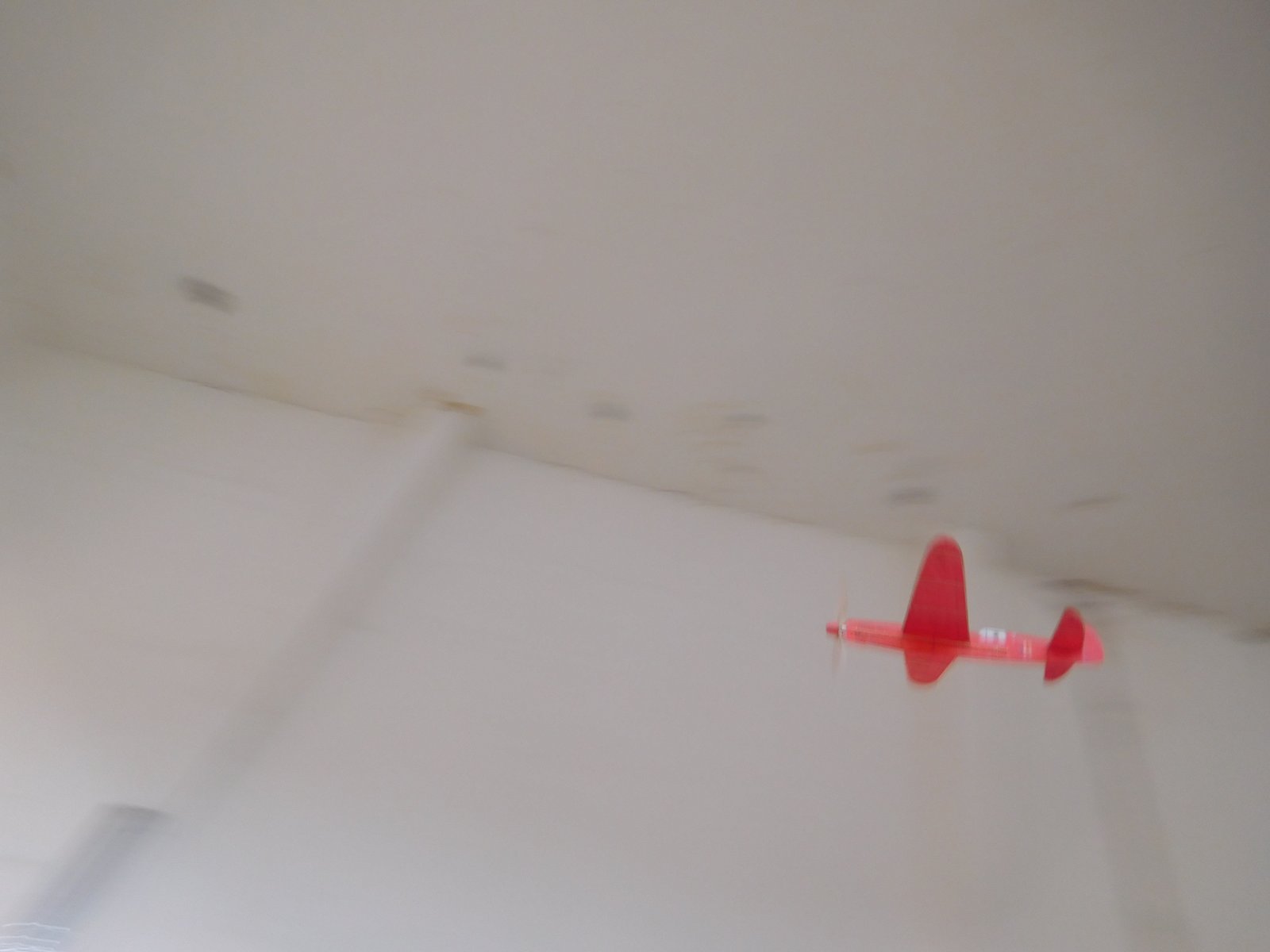 Cestou zpátky jsem se zastavil na mém plácku. bylo téměř bezvěrší, jen obšas závan do 1m/s. Natočil sem model na 1000 otášek a zkusil jak poletí, chvíli dobře, pak pád a ulomení jednoho listu vrtule. Zkusil jsem to s jednolistou a model letěl asi 40 , pak jej průvan sfoukl. na zbytek pak za chvíli v klidu letěl 25s a po chvíli ještě k tomu dalších 20 s, to ve svasku ještě zůstalo asi 300 otáček. Bez možnosti letět s tímto modelem v hale nemá smysl jej trápit pokusy venku.