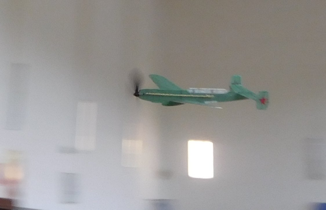 Ošklivé počasí tohoto víkendu bylo ideální pro stavbu nového modelu, Vybral jsem si Bolchovitinov S protože má velmi štíhlý trup, který se dá postavit lehký, velkou VOPa dvojité SOP, což dává záruku velké stability i při hodně prohnutém profilu křídla, Použil jsem dobrou třílistou vrtuli ze starého oříška HD 731 o průměru jen 150mm, Model nebylo nutné dovažovat a bez gumy váží 5 g. Dá se říci, že splňuuje vše co jsem očekával, hezky stabilně letěl hned napoprvé a bez problémů se vejde i do úzké haly. Dnes bylo v hale chladno, jen 13C, na starší olétanou gumičku model na 1400 otáček nastoupal výšku asi 8m a 93s. 28.4. byla teplota v hale 18 C a testoval jsem starou gumu TAN SS K=11 01/2006 svazek l=470 2,06g/m Nmax=2400 při 25 C a 2100 při 15C. Na 1400 ot výška 6m, časjen 66s.. Jiná guma Hannan l=440mm 1.95 g/m Nmax 2400 točím 1650 výška 8m let 80s. Druhé natočení 1860 výška 9,5m, let 125s hezky ucentrované bez rizika kontaktu se stěnami haly. Spokojenost, s takovým modelem je radost létat.
