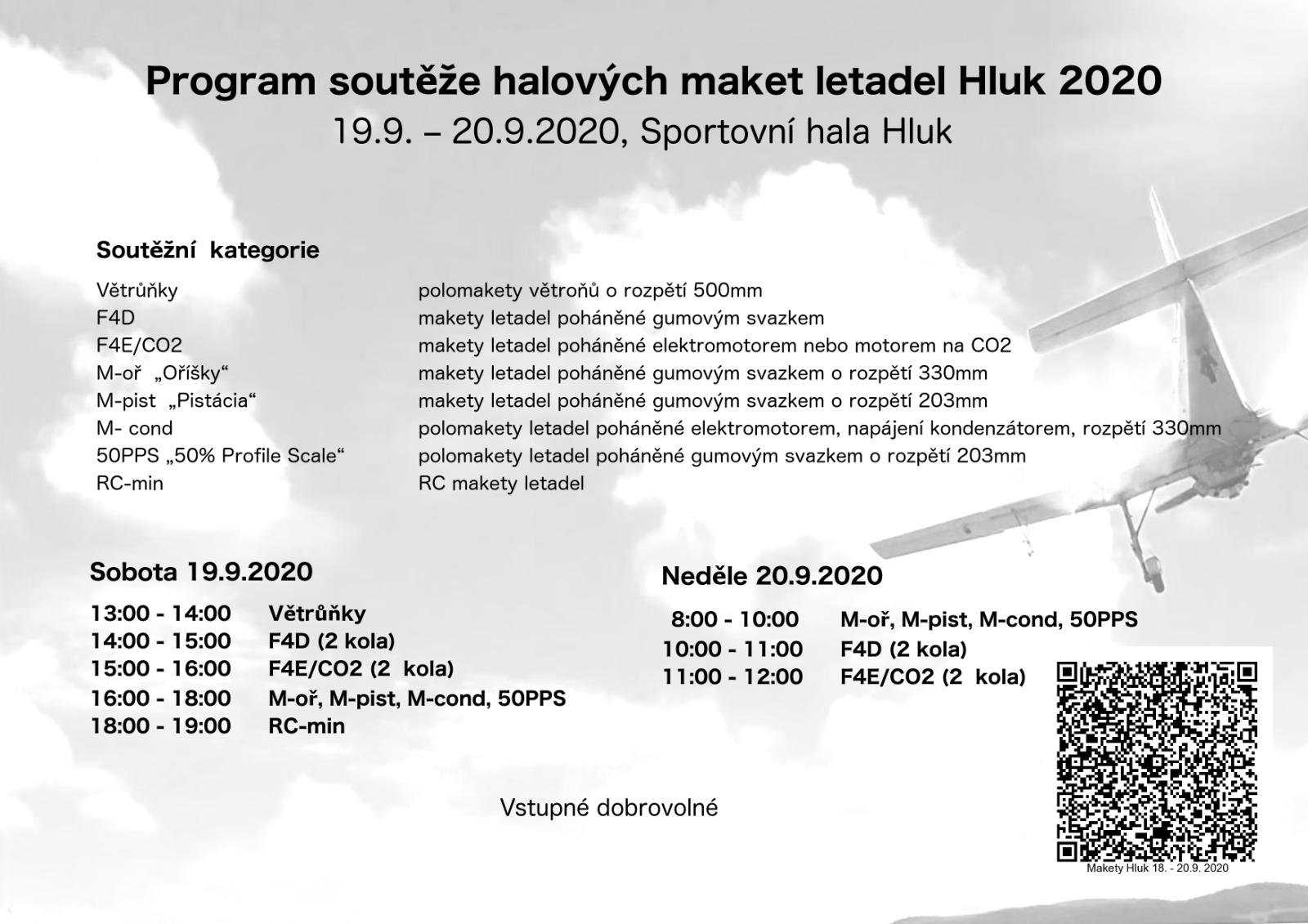 Zatím počítám se soutěžemi F1N, větrůňci, Oříšky, Pistácia, F4D, F4E. F1N i větrůňci by se mohly létat na několik denních/nočních kol, F4D a F4E určitě na 2 + 2 kola.