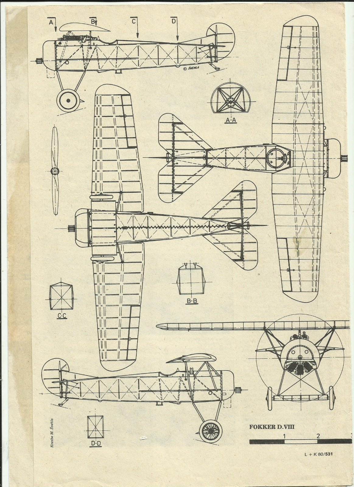 Nejvíce informací, včetně detailních výkresů a fotek s různými motory i se štyřlistou vrtuli najdete v americkém WWI Aero (z Peter M. Gross archivu), ale problematické debaty o barvách tam nenajdete...