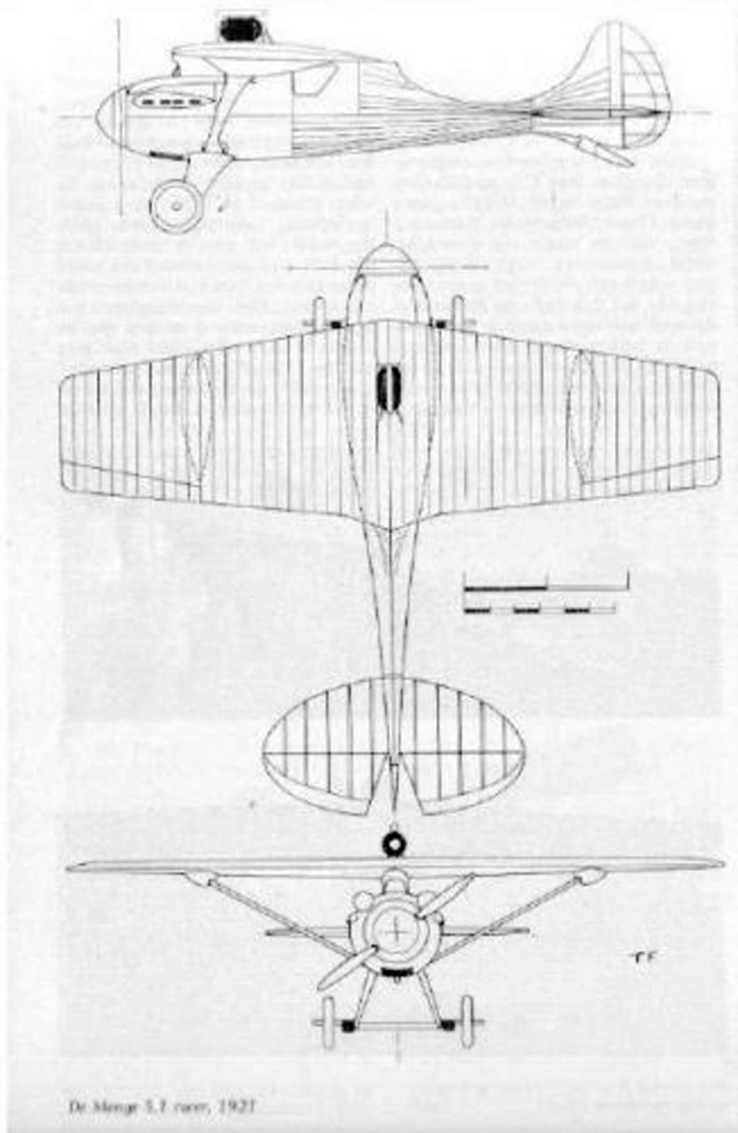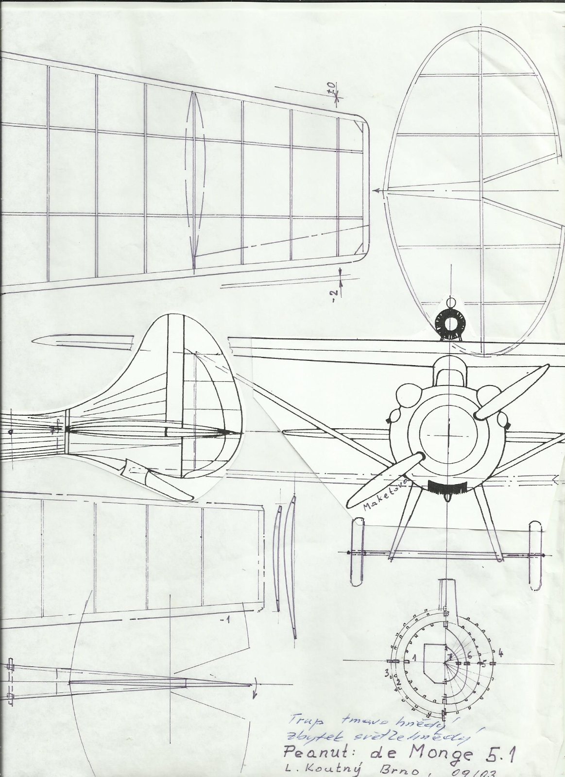 Zajímavé je, že se stíhačkou Monge neuspěl, ale dvouplošná verze se zcela jinými křídly létala jako racer s označením Monge 5/1, Horní křídlo o malém rozpětí a velké hloubce má optimální proporce pro minimaketu M-oř, přikládám plánek. Je otázkou jaké byly barvy, to by snad upřesnili v museu Le Bourget (chcete li odpověď na dotaz, pak pište francouzsky). Třípohled tohoto racera sice máme na internetu, ale je v html, takže sem jej nezkopiruji, ale není problém jej vytisknout, já to udělal do velikosti M-oř a použil pro můj plánek.