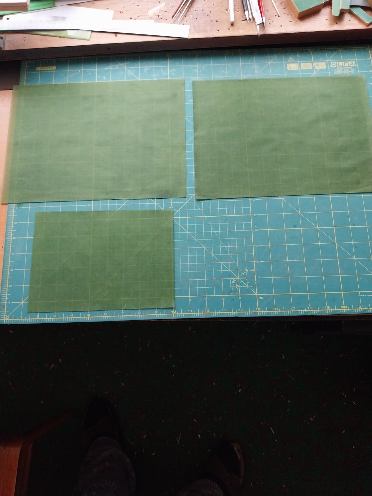 Tak jsem dneska ještě zkusil obarvit papír na ruskou zelenou .Ta I-16 ve světle šedém zbarvení by byla pěkná stříkaná barvami ale barevným světle šedým papírem se mi to moc nelíbilo. Obarvený papír světle šedou použiju na Jaka 3 v kombinaci barev světle šedá a tmavošedé skrvny asi letka Normandie Němen nebo pod. U I-16 se ještě rozhodnu ale určitě použiju tu zelenou na horní a boční plochy.