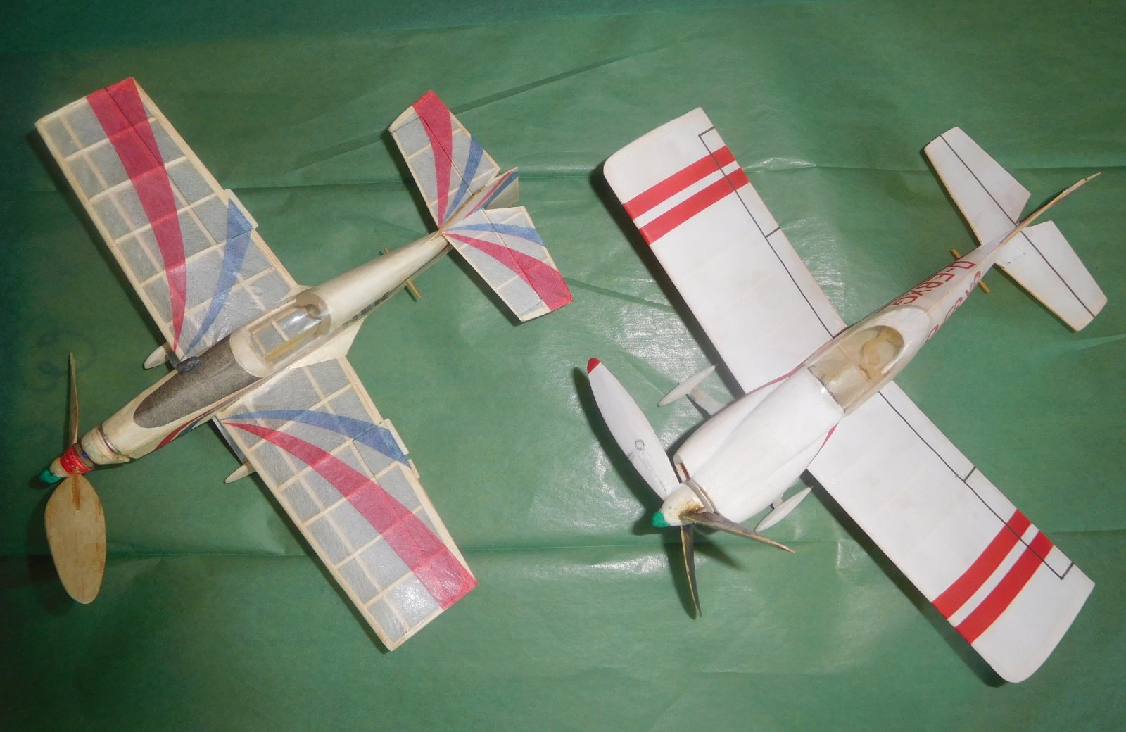Tyto čtyři modely jsou potaženy tenkým kondenzátorákem a stříkány humprolkami, jsou tedy lehké, stabilní a létavé,